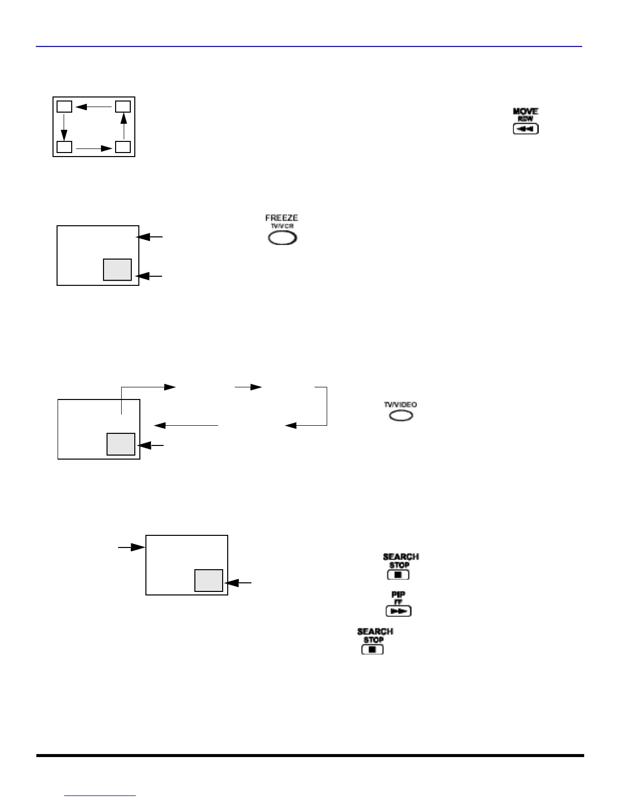 Each time the MOVE button is pressed, the PIP frame will move counterclockwise as illustrated.