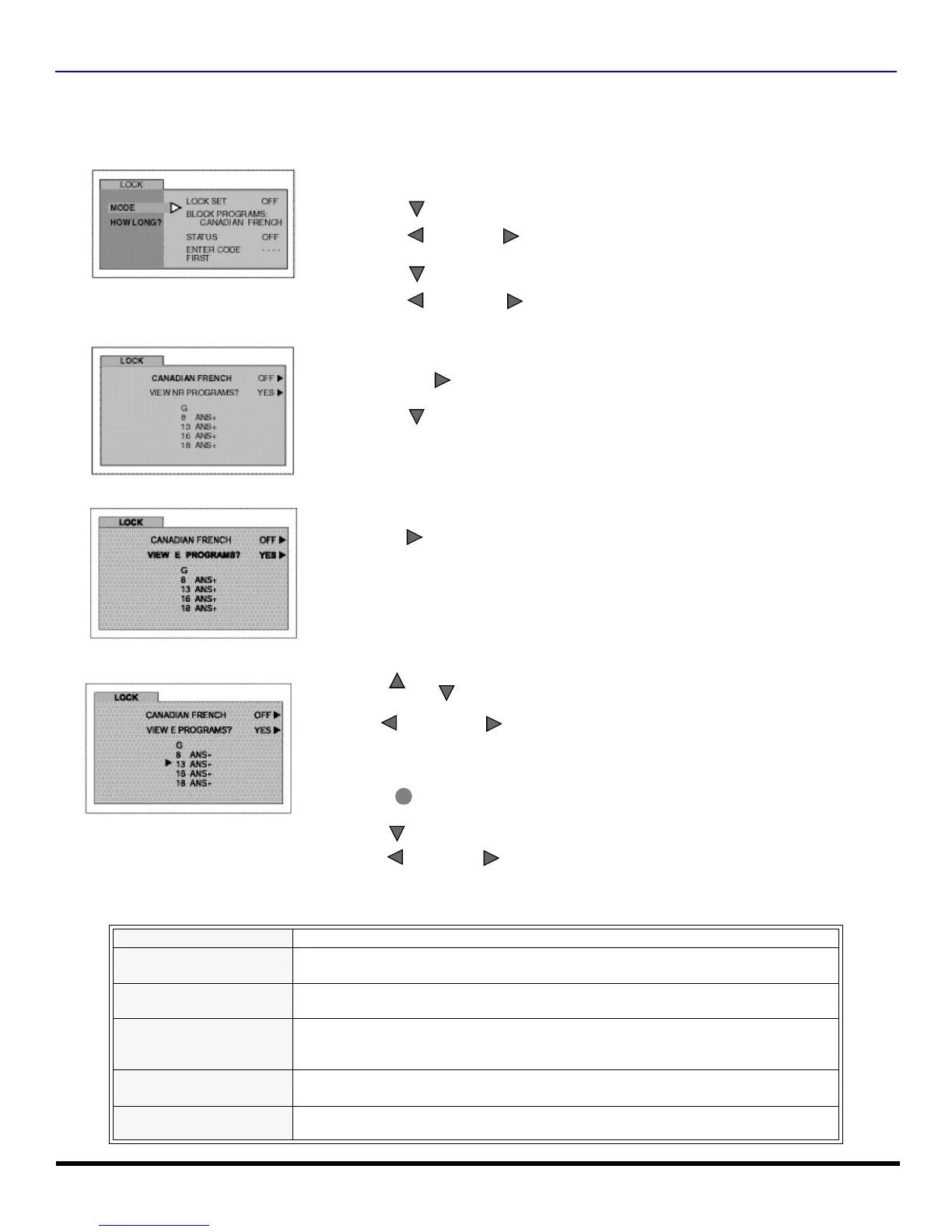 V-CHIP MENU OPERATION