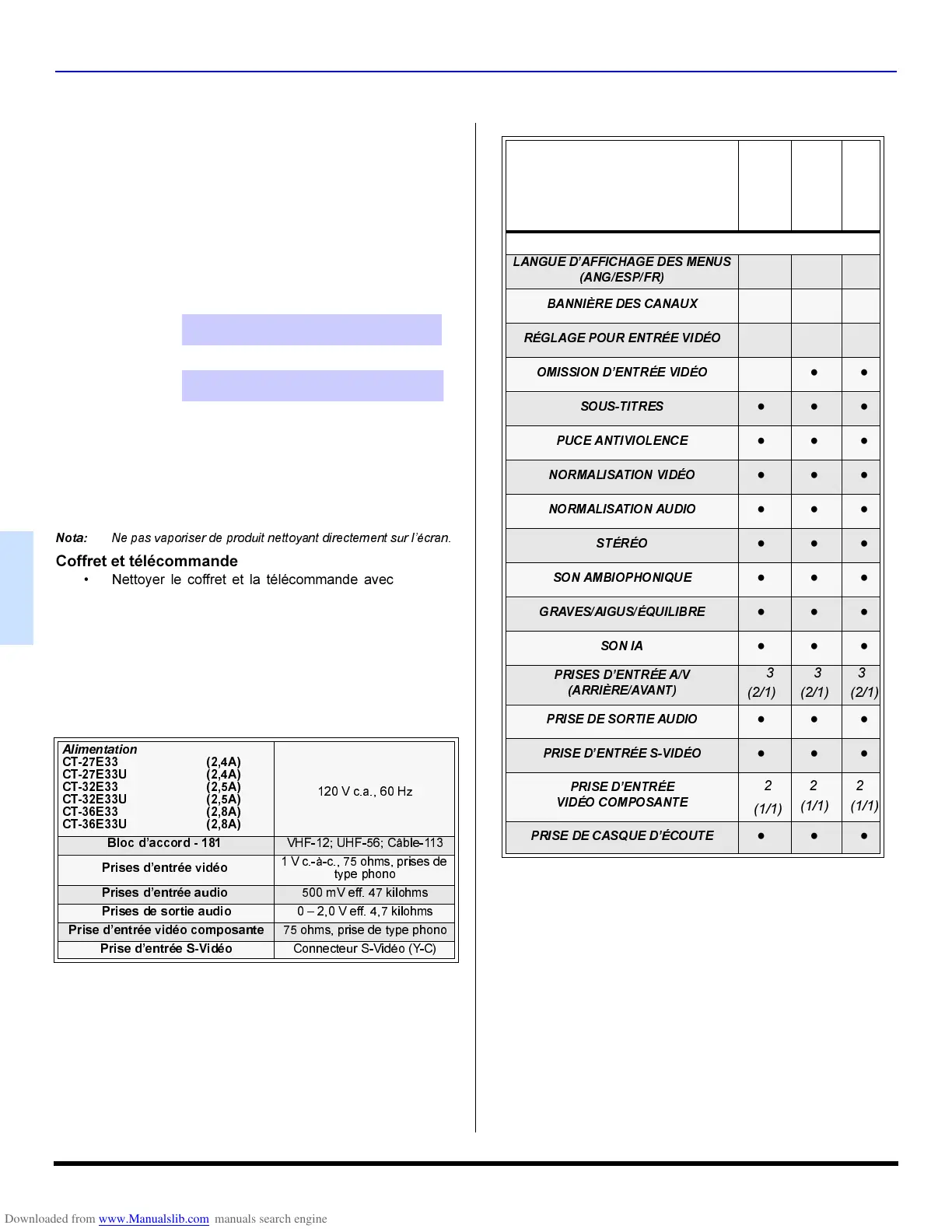 7DEOHGHVFDUDFWpULVWLTXHV