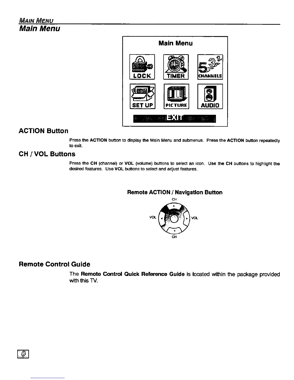 Panasonic CT-36D30 - Main Menu Feature Chart; Timer Features; Picture Adjustments; Channel Settings