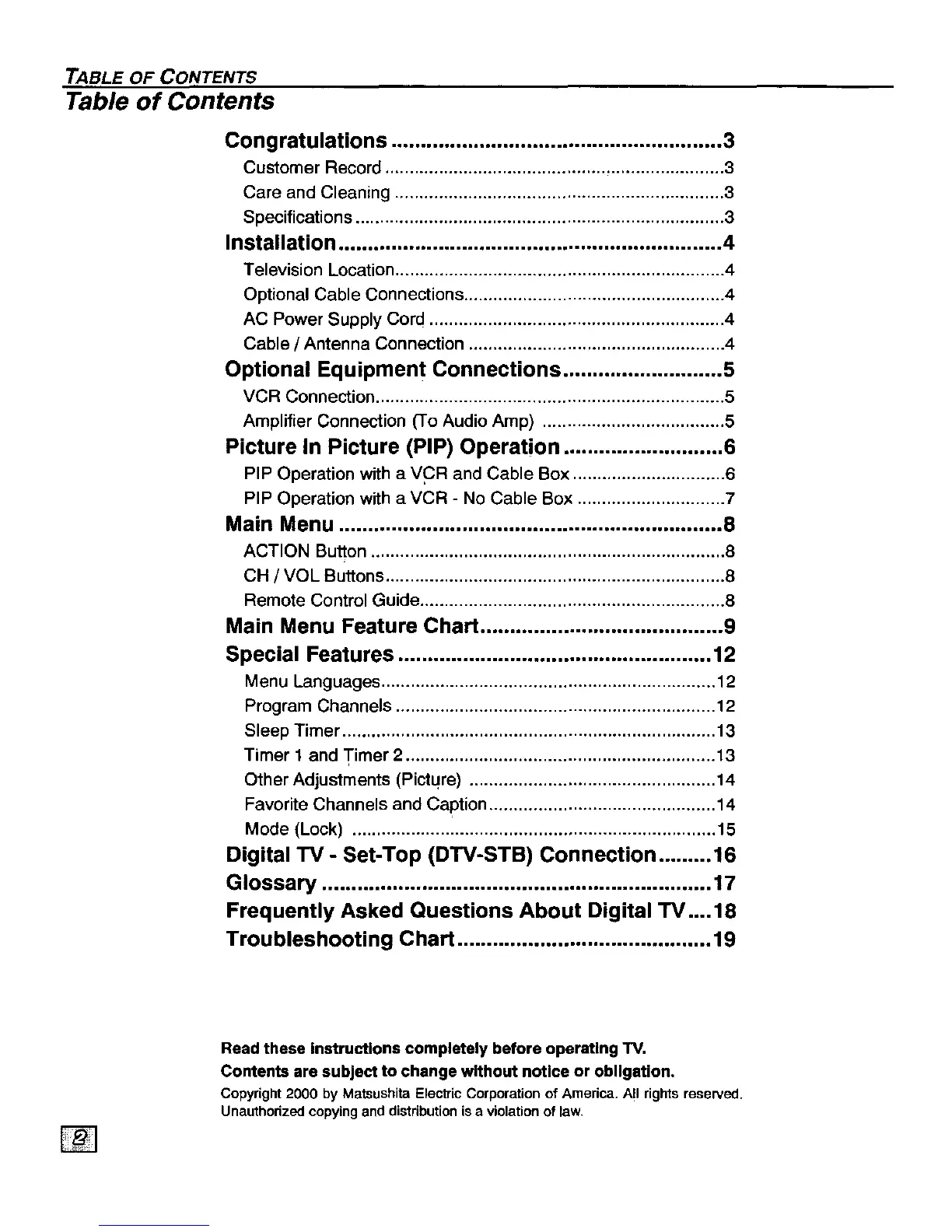 Panasonic CT-36D30 - Installation; Television Location; Optional Cable Connections; AC Power Supply Cord