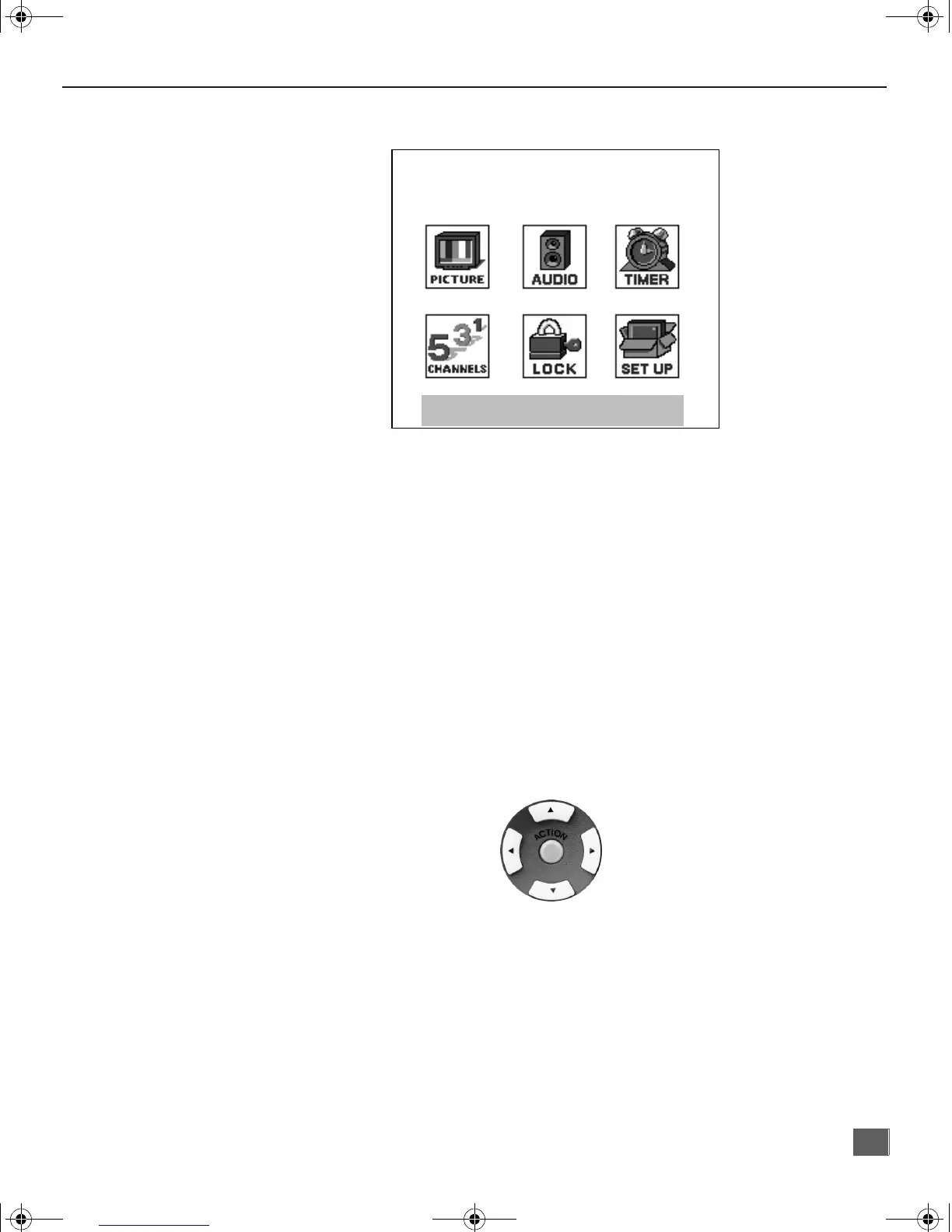 2. Press the CH up/down or VOL right/left button to highlight the desired icon.