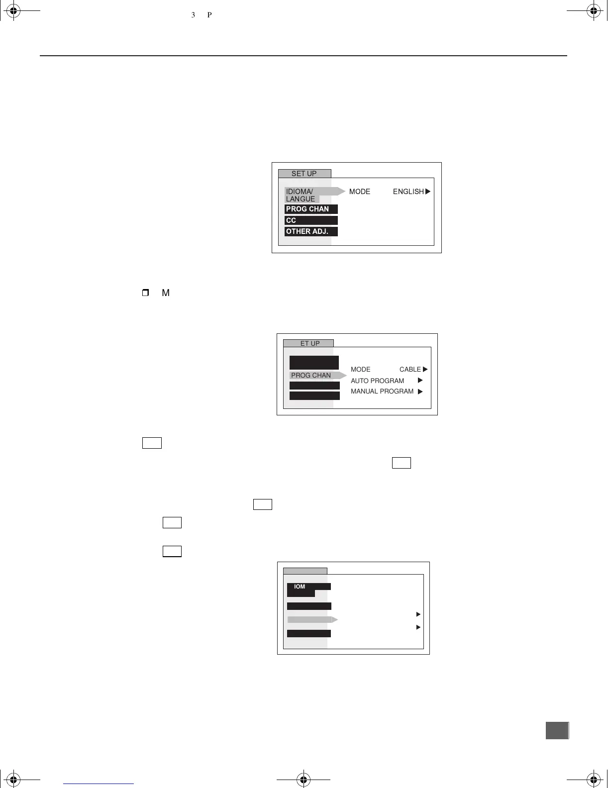In SET UP menu under PROG CHAN select: