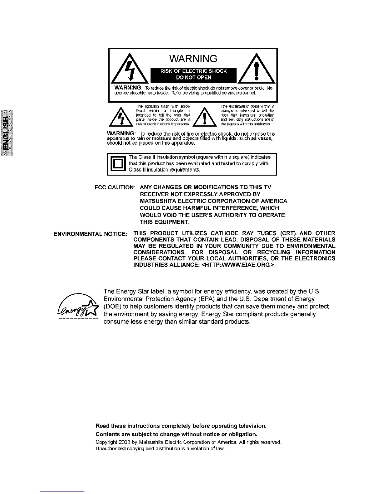 Copyright 2003 by MatsushitaElectrio Corporation of Araerica. All rights reserved.