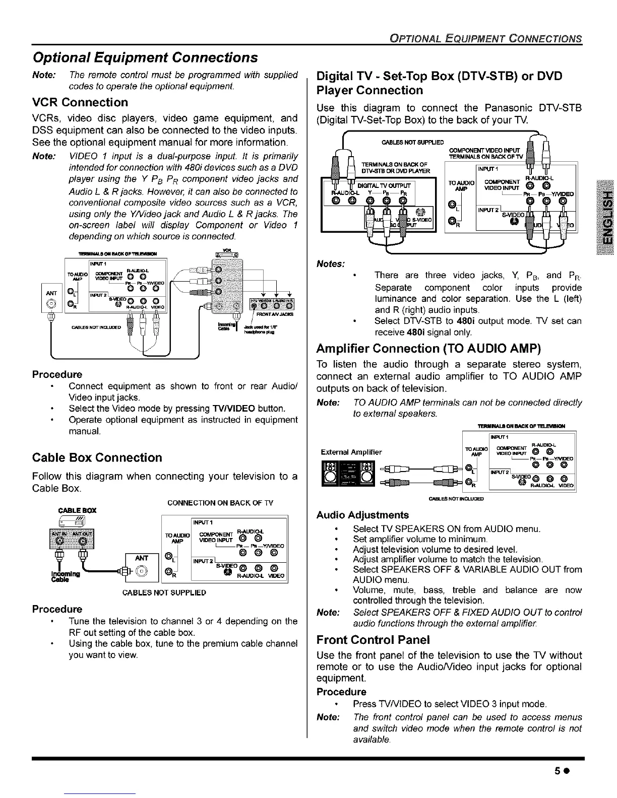 Note: VIDEO 1 input is a dual-purpose input. It is primarily