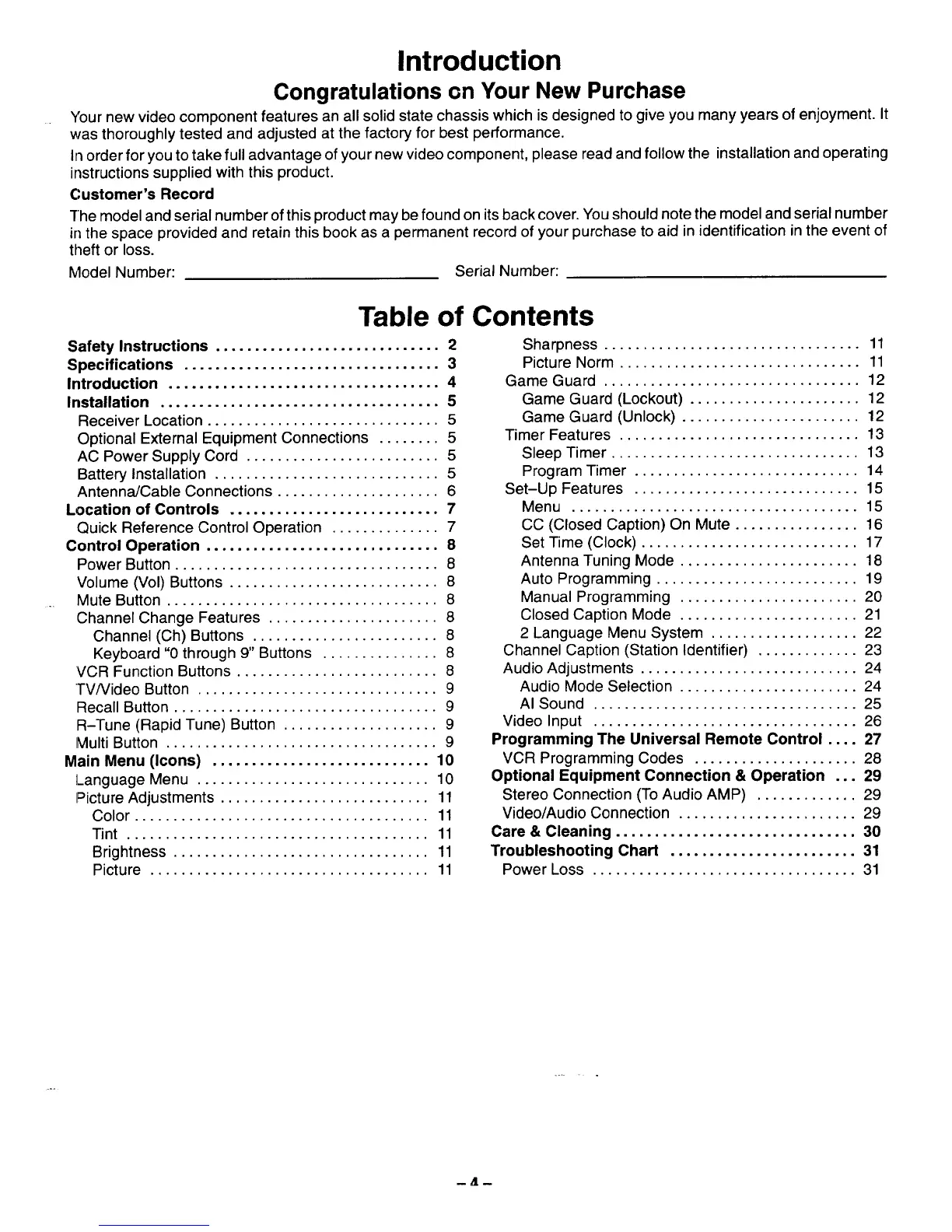 Your new video component features an all solid state chassis which is designed to give you many years of enjoyment. It