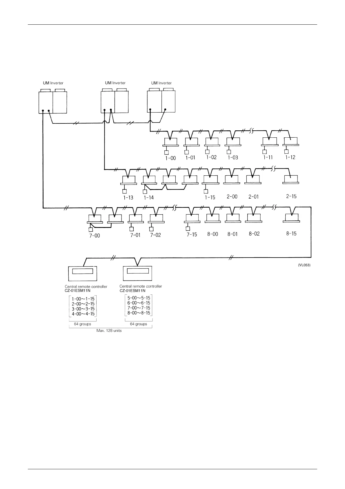 Up to 128 indoor units can be connected within a system. (Group control is not required to increase the