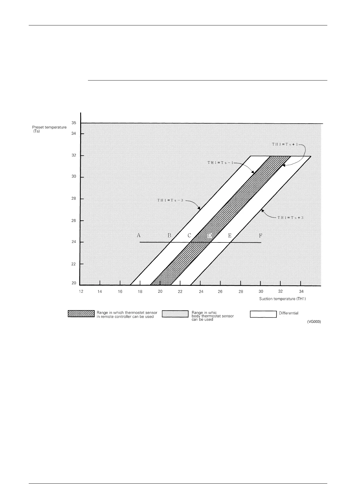 Remote controller thermostat sensor is used for temperatures from 25°C to 21°C (D