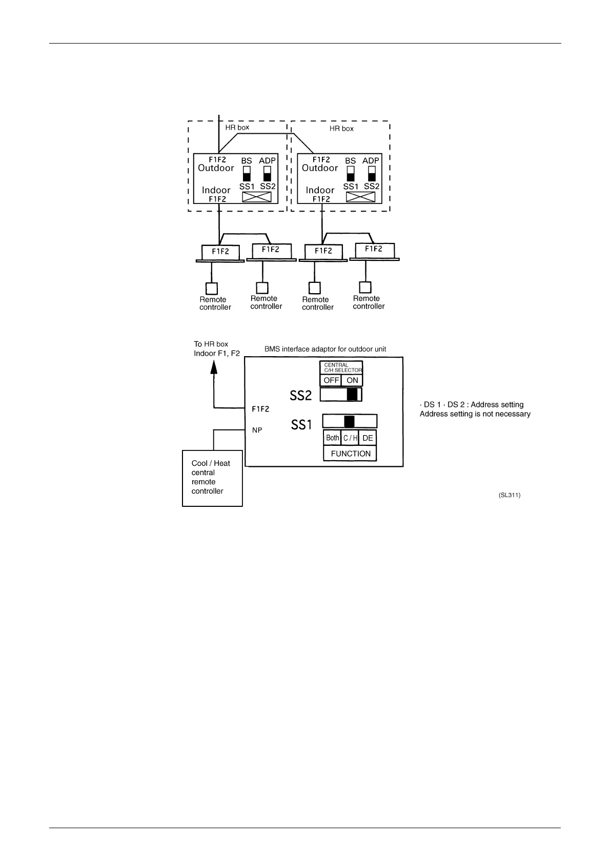 Install the "BMS interface adaptor for outdoor unit" in HR box.