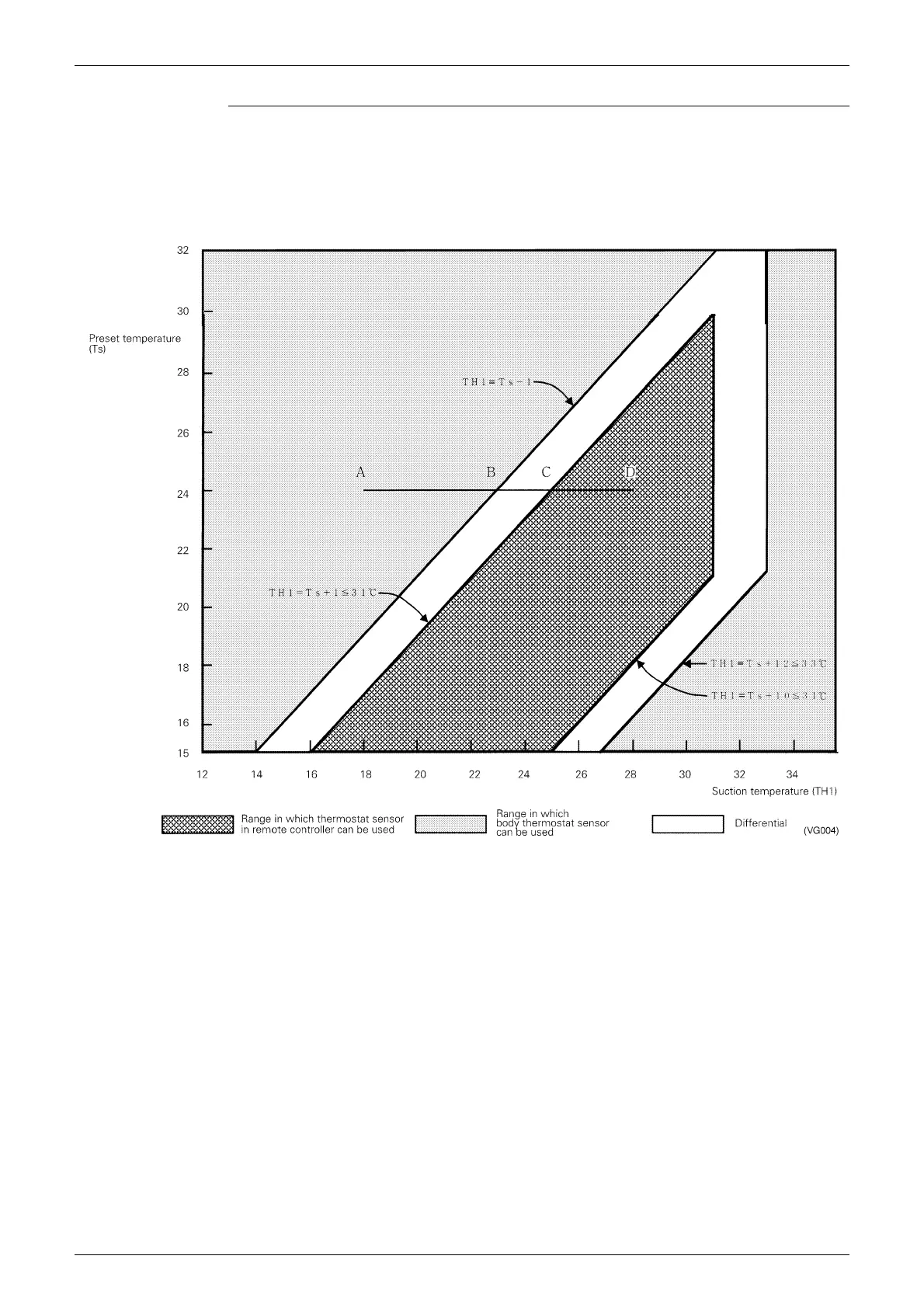 Remote controller thermostat sensor is used for temperatures from 28°C to 23°C (D