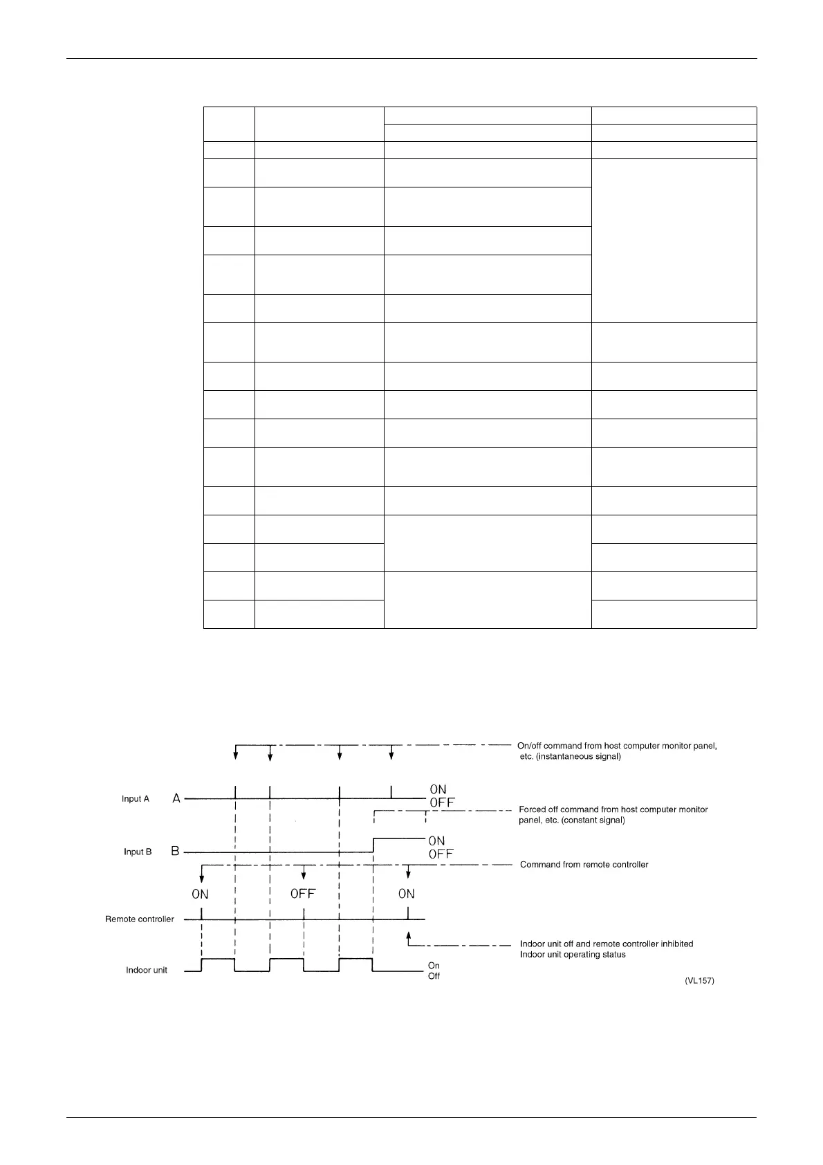 Below are remote control commands relative to input signal and indoor unit time chart