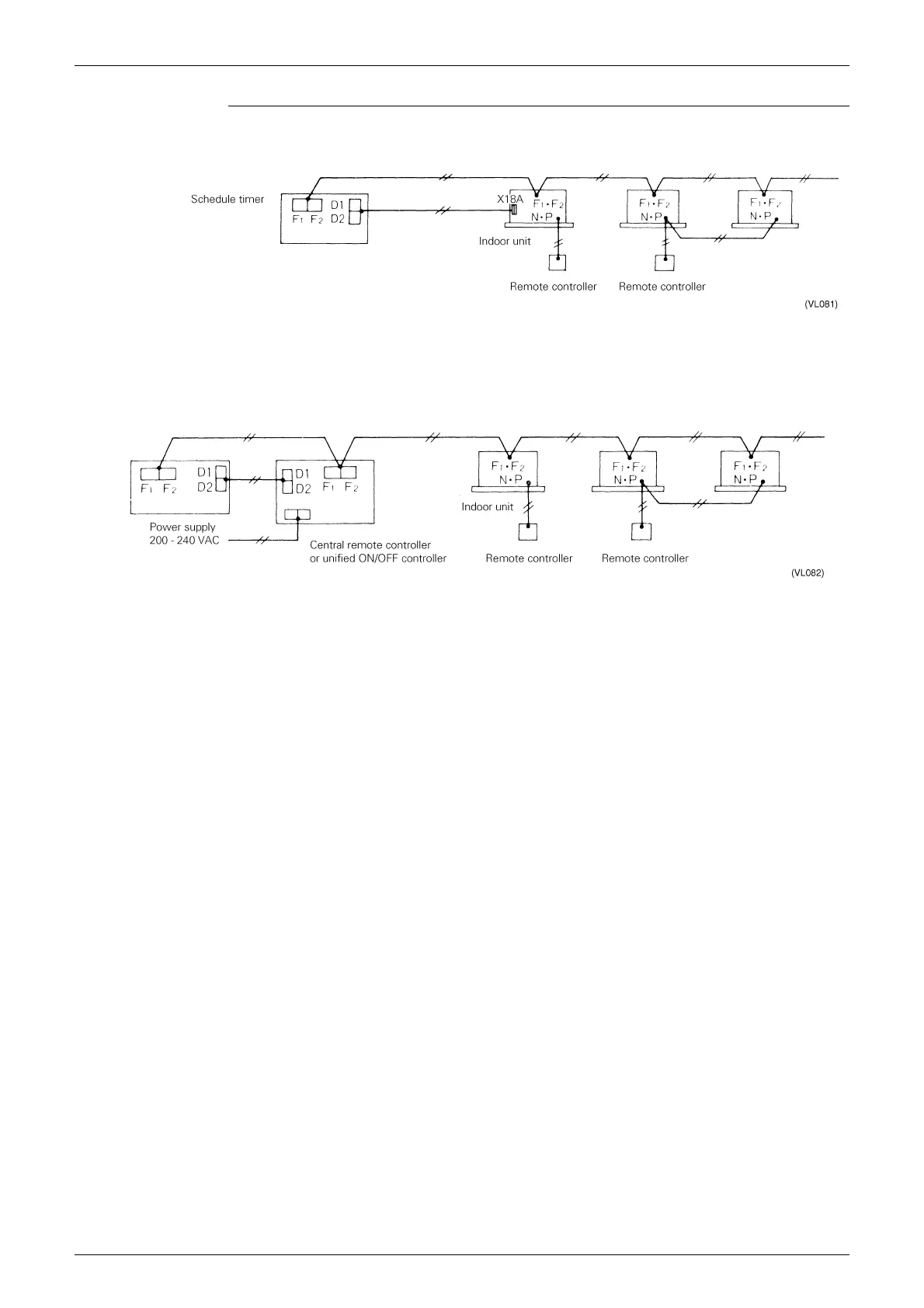 (1)series wiring, (2) bus type wiring and (3) star type wiring are the same as with a central remote