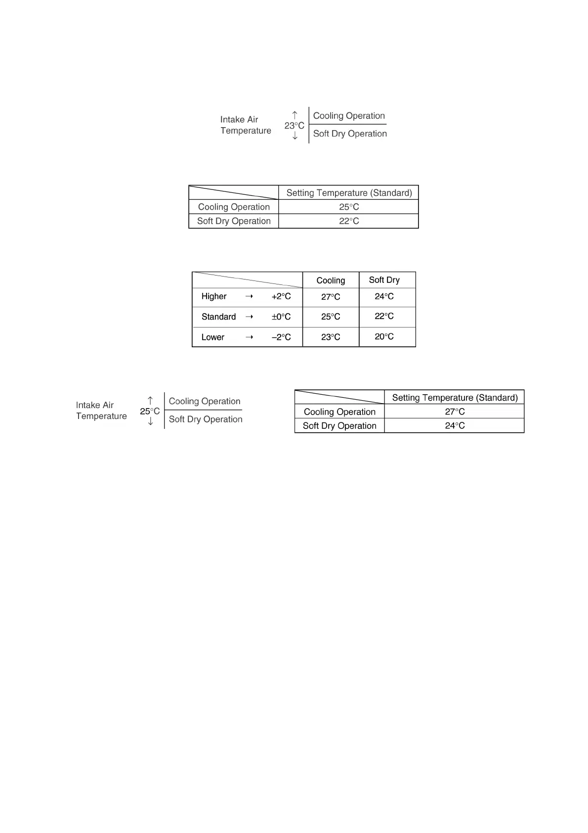 • The setting temperature for all the operations can be changed one level up or one level down from the standard temperature as