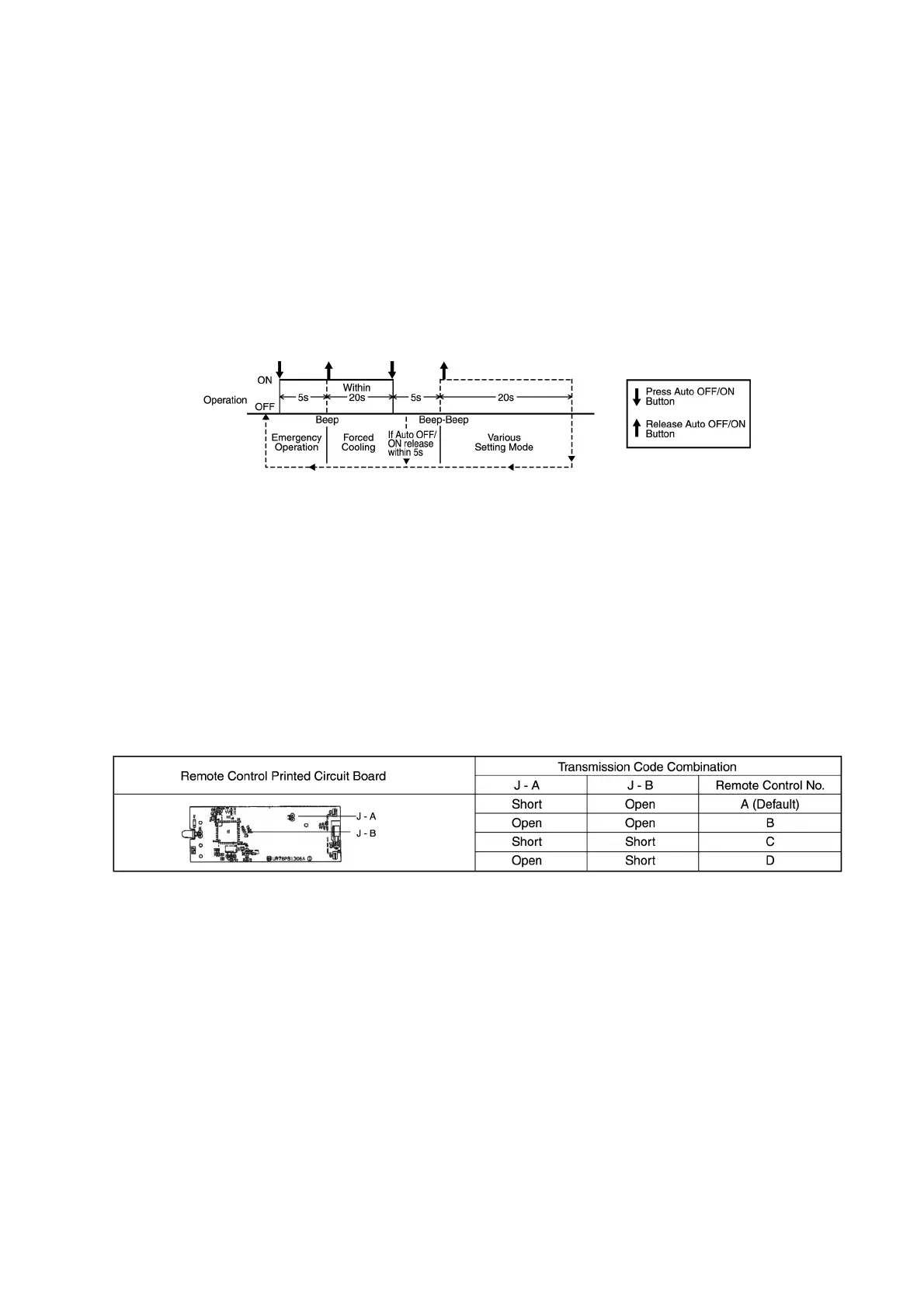• To change remote control transmission code, short or open jumpers at the remote control printed circuit board.