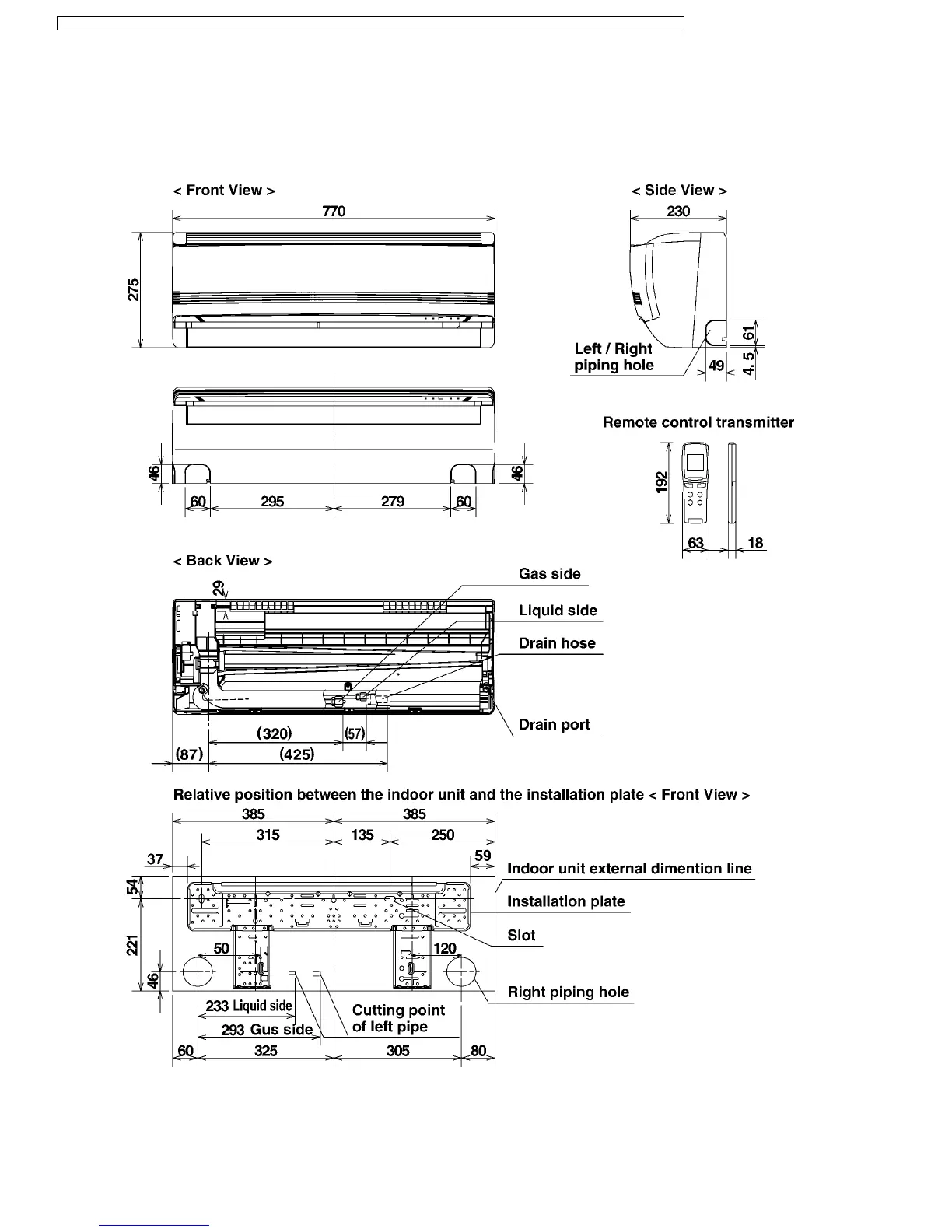 Panasonic CU-2E15CBPG - 5 Dimensions; Indoor Unit; Me7 Ckpg;Me10 Ckpg;Me12 Ckpg;Me14 Ckpg;Me18 Ckpg)