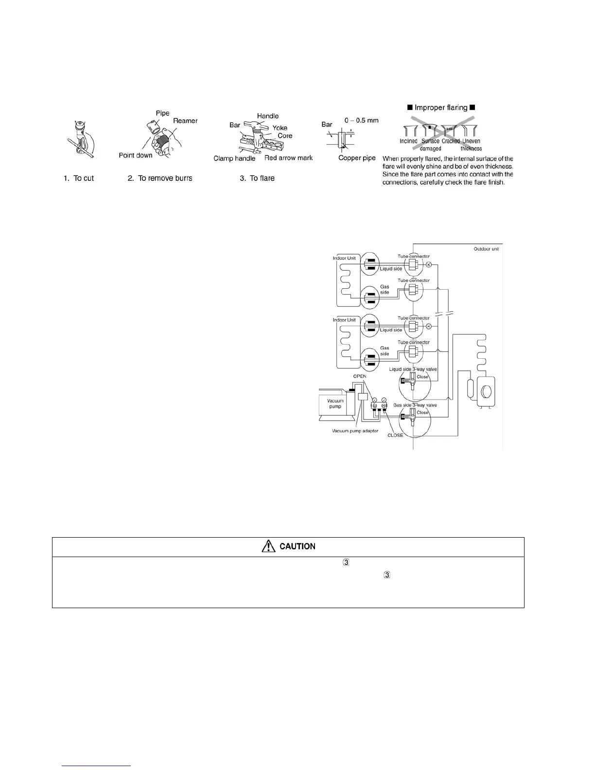 3. Please make flare after inserting the flare nut onto the copper pipes.
