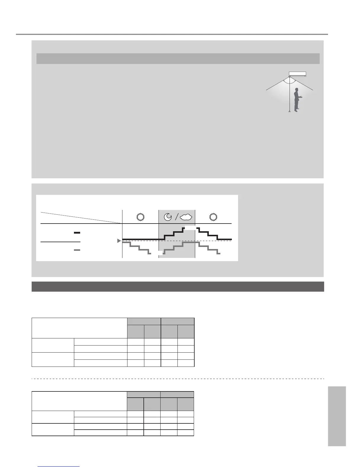 • In een vertrek zonder venster of met een dik gordijn zal de zonlichtsensor de omstandigheden beoordelen als