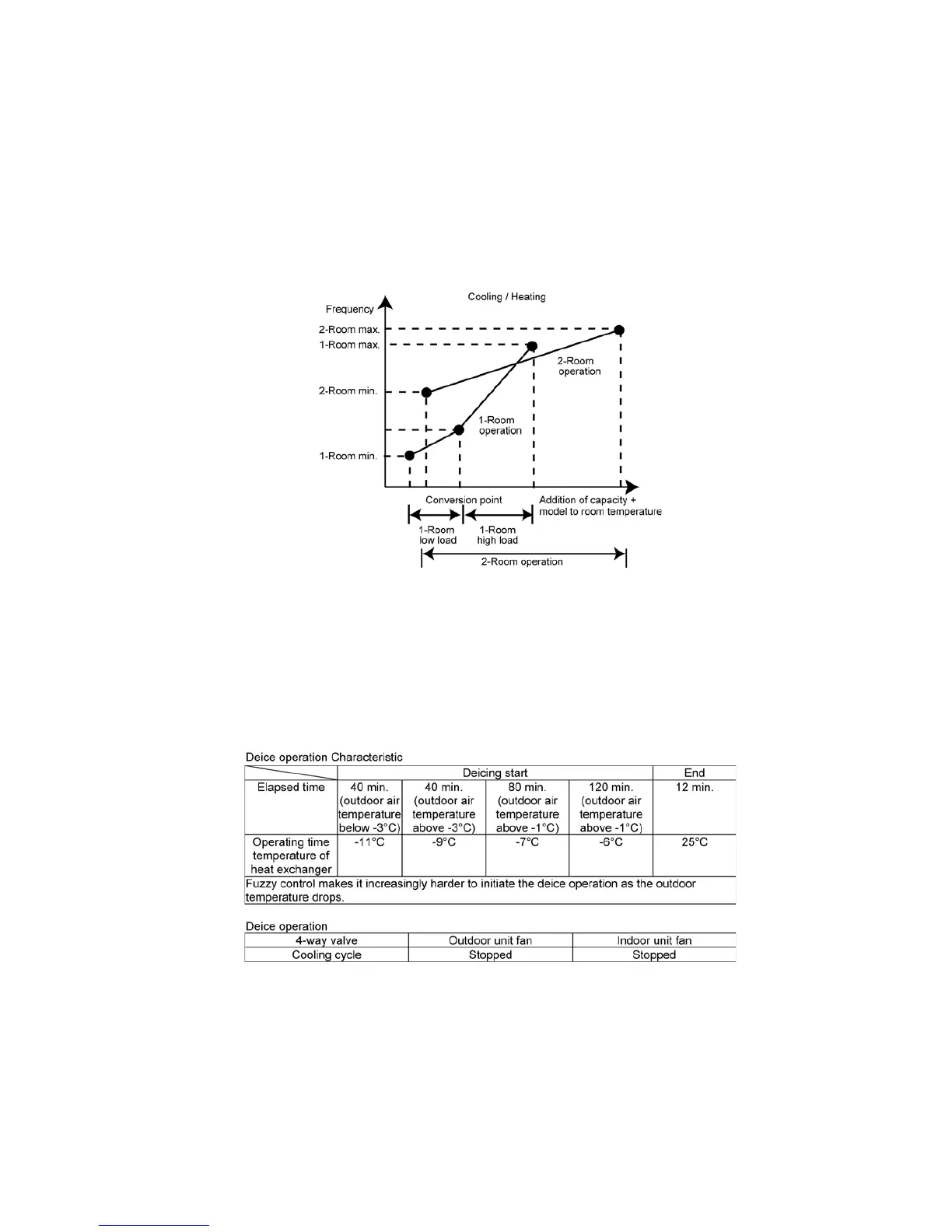 - Deice operation ends about 12 minutes of operation or the temperature of heat exchanger rises above 25°C.