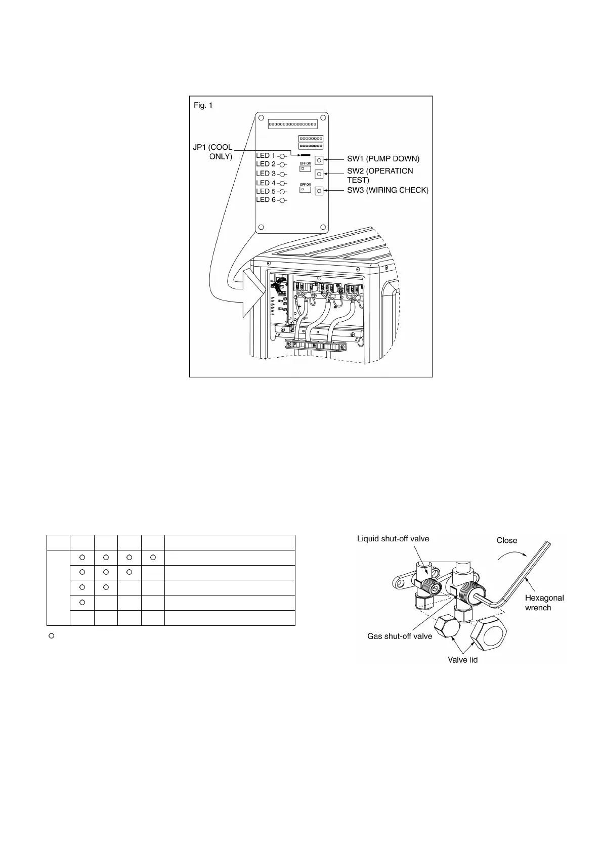 NOTE: Pump down operation will stop automatically after 15 minutes if PUMP DOWN switch (SW1) is not