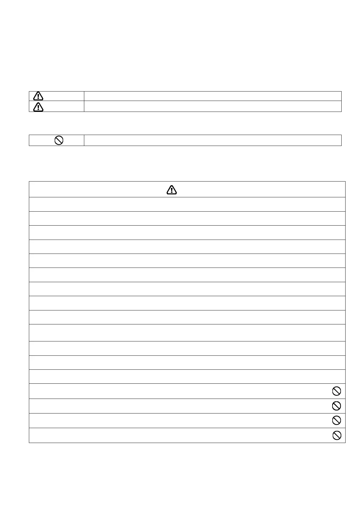 The caution items stated here must be followed because these important contents are related to safety. The