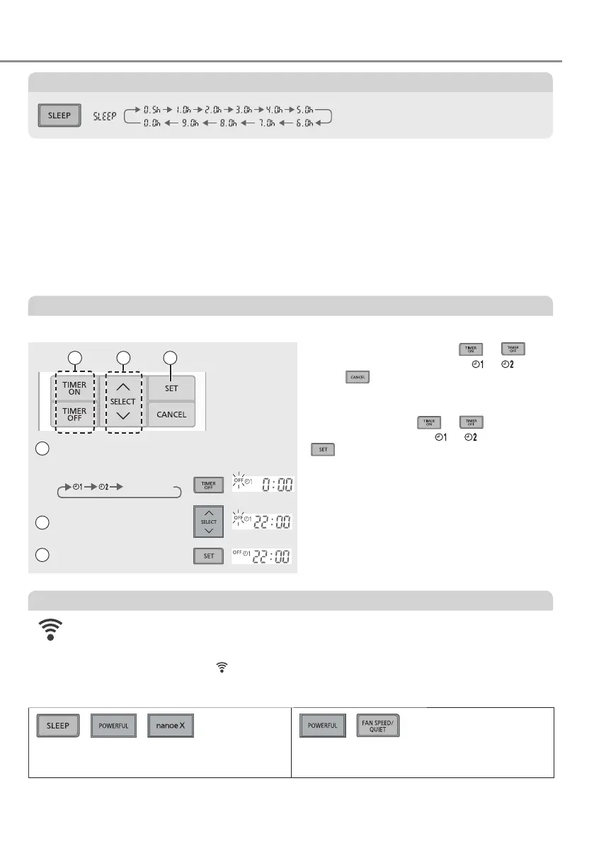 • This operation can be cancelled by pressing the respective button until the sleep timer