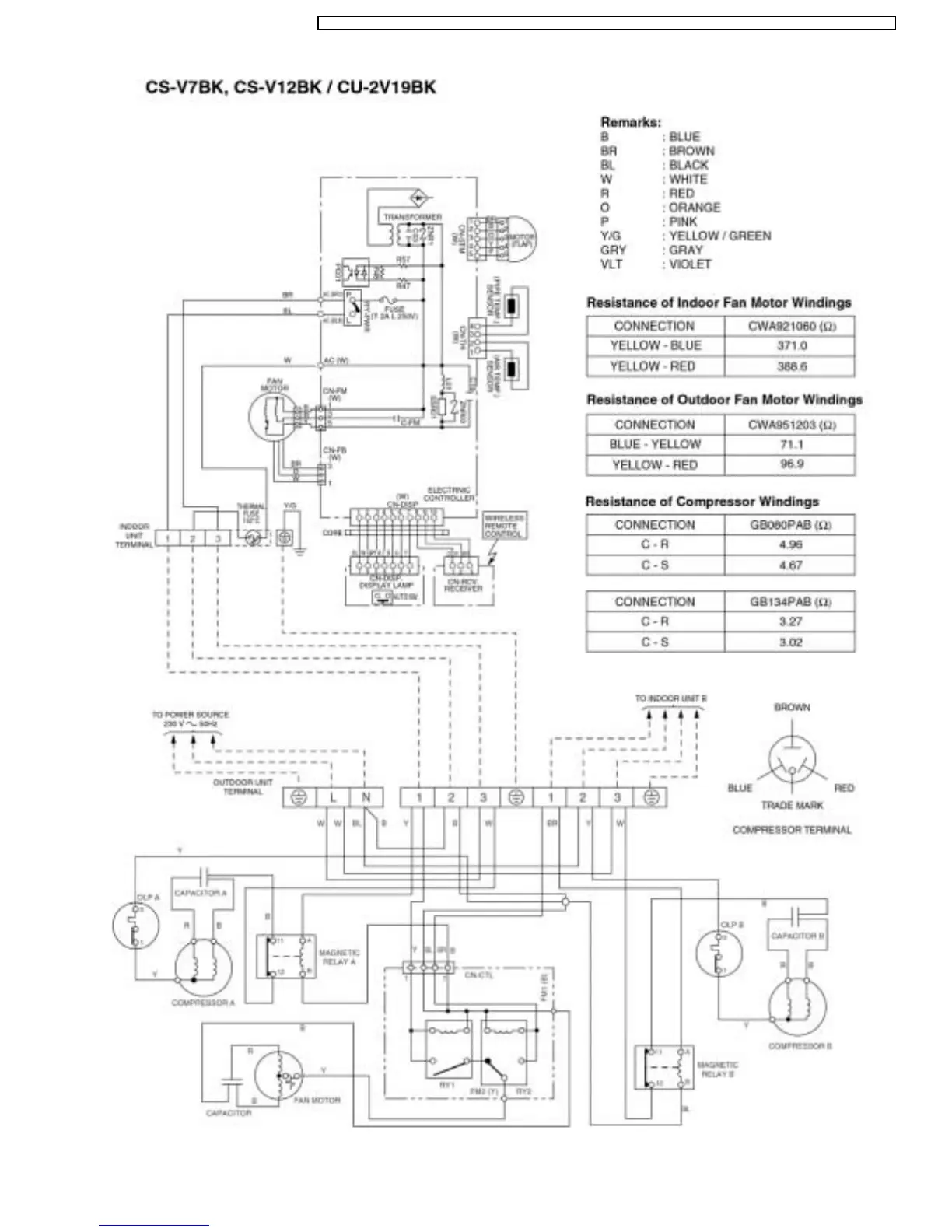 Panasonic CU-2V18BKP5G - Wiring Diagram for CS-V7 BK;CS-V12 BK Series