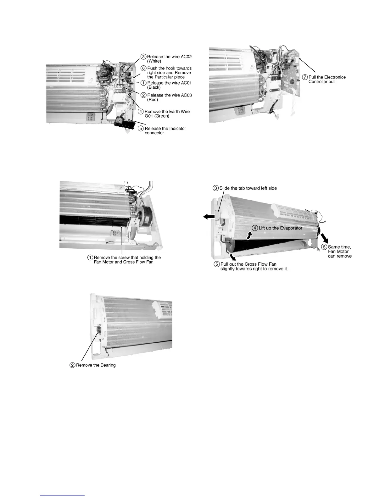1. Remove Cross Flow Fan and Fan Motor.