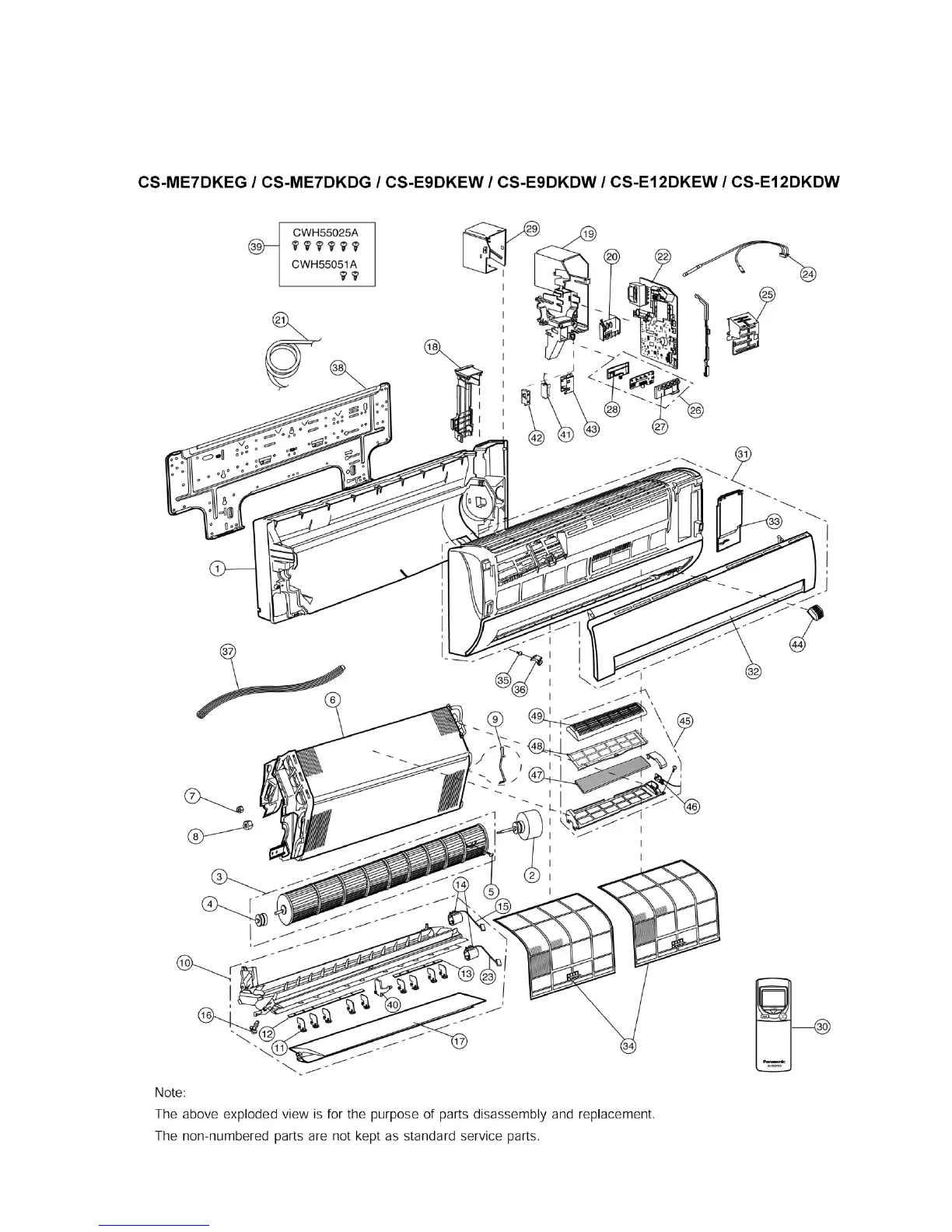 Panasonic CU-3E18EBE - 14 Exploded View and Replacement Parts List; Wall Type