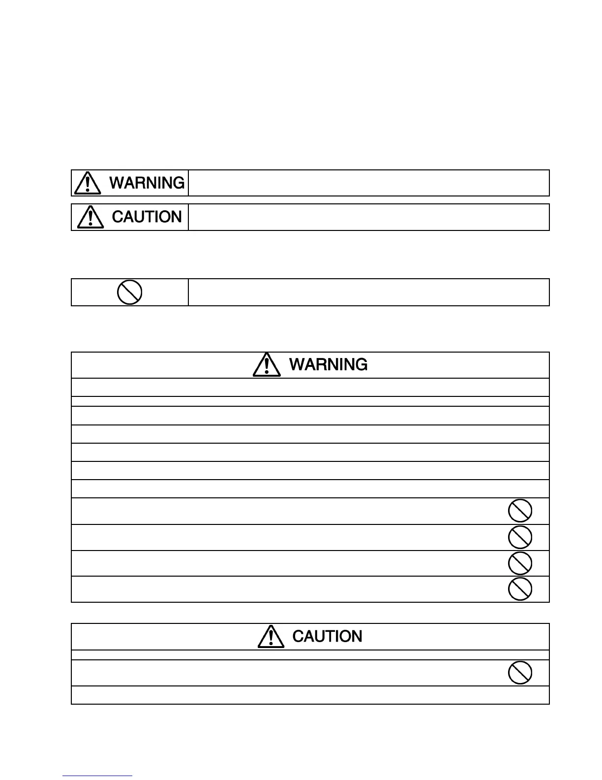 • The caution items stated here must be followed because these important contents are related to safety. The meaning of each