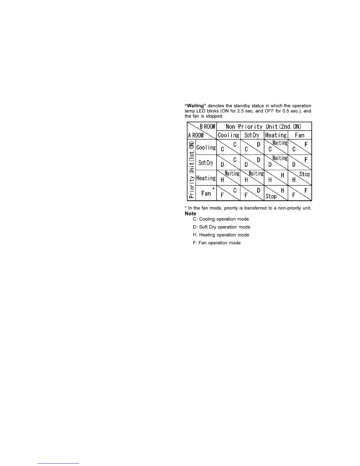 fan operation, the priority is transferred to other indoor