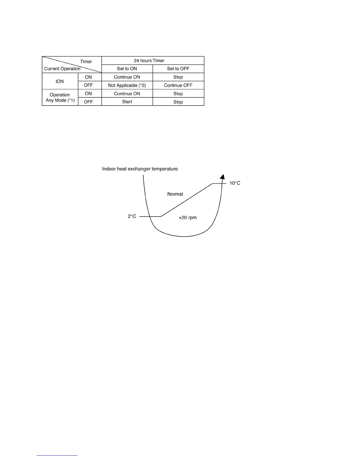 1. When indoor heat exchanger temperature is lower than 2°C continuously for six minutes, compressor will stop operating.