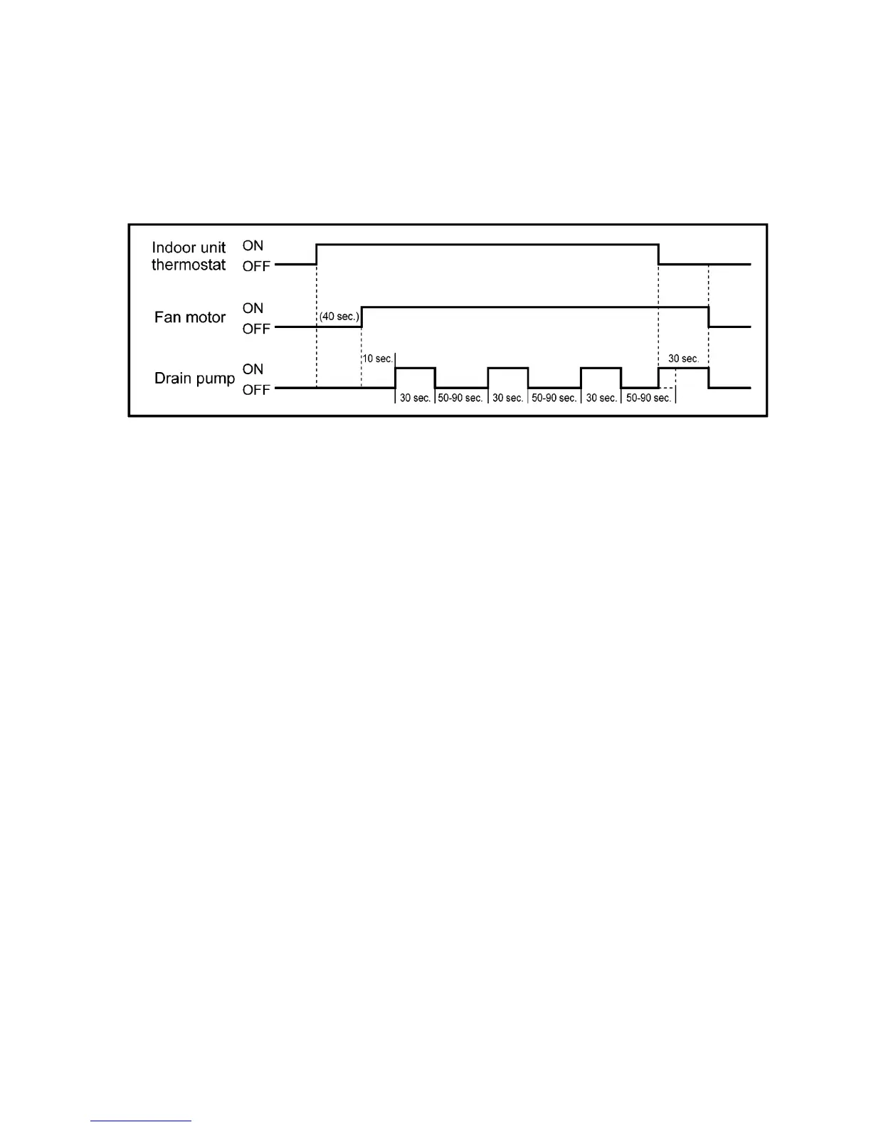 • The drain pump starts 50 seconds after the indoor unit starts or the thermostat comes on (i.e., 10 seconds after the fan