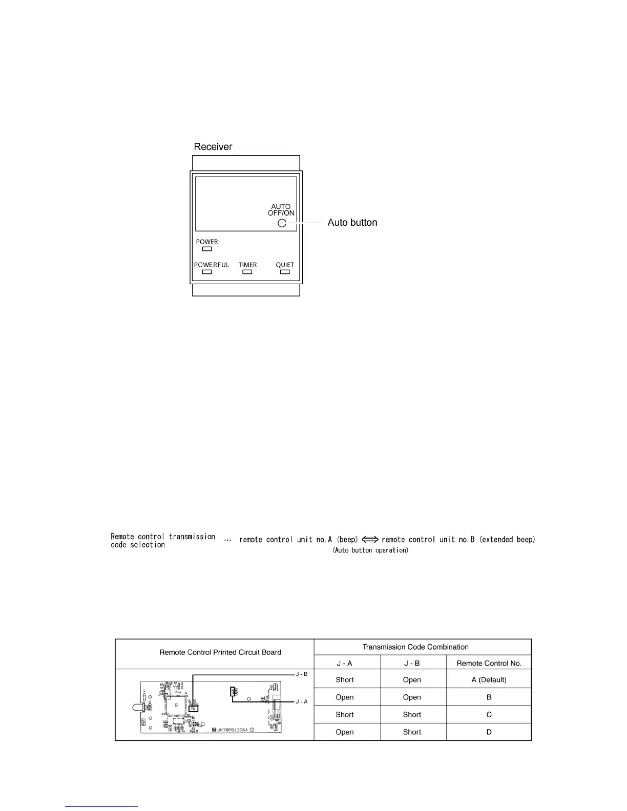 • To change remote control transmission code, short or open jumpers at the remote control printed circuit board.