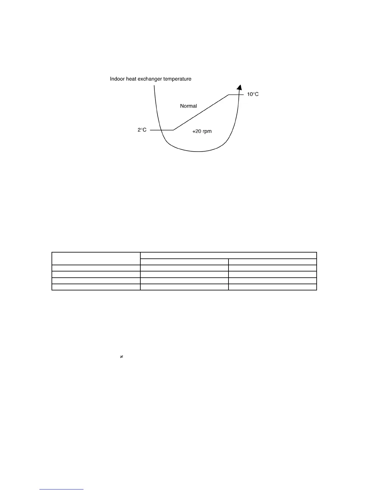 4. If indoor heat exchanger temperature is higher than 10°C for five minutes, the fan speed will return to its normal operation.