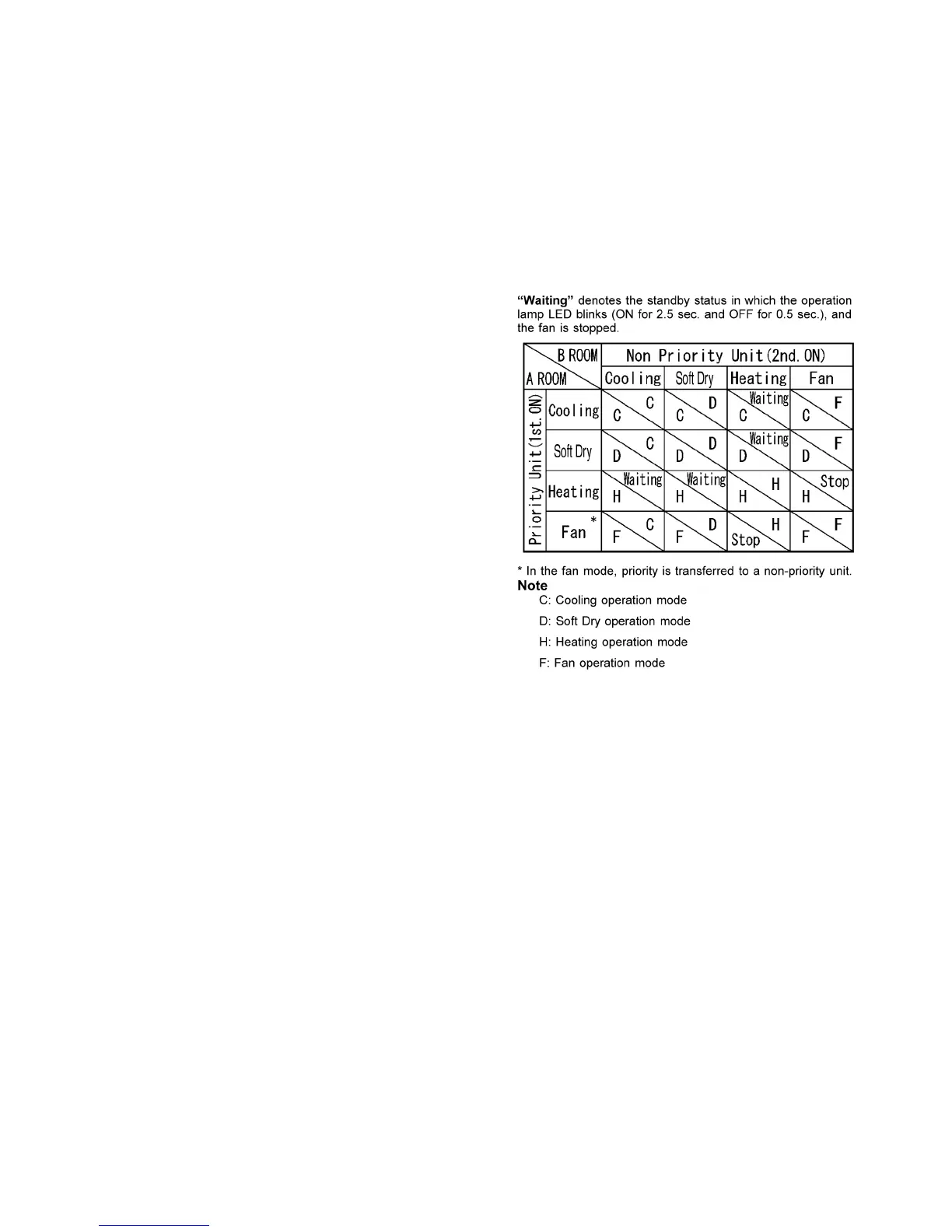 fan operation, the priority is transferred to other indoor