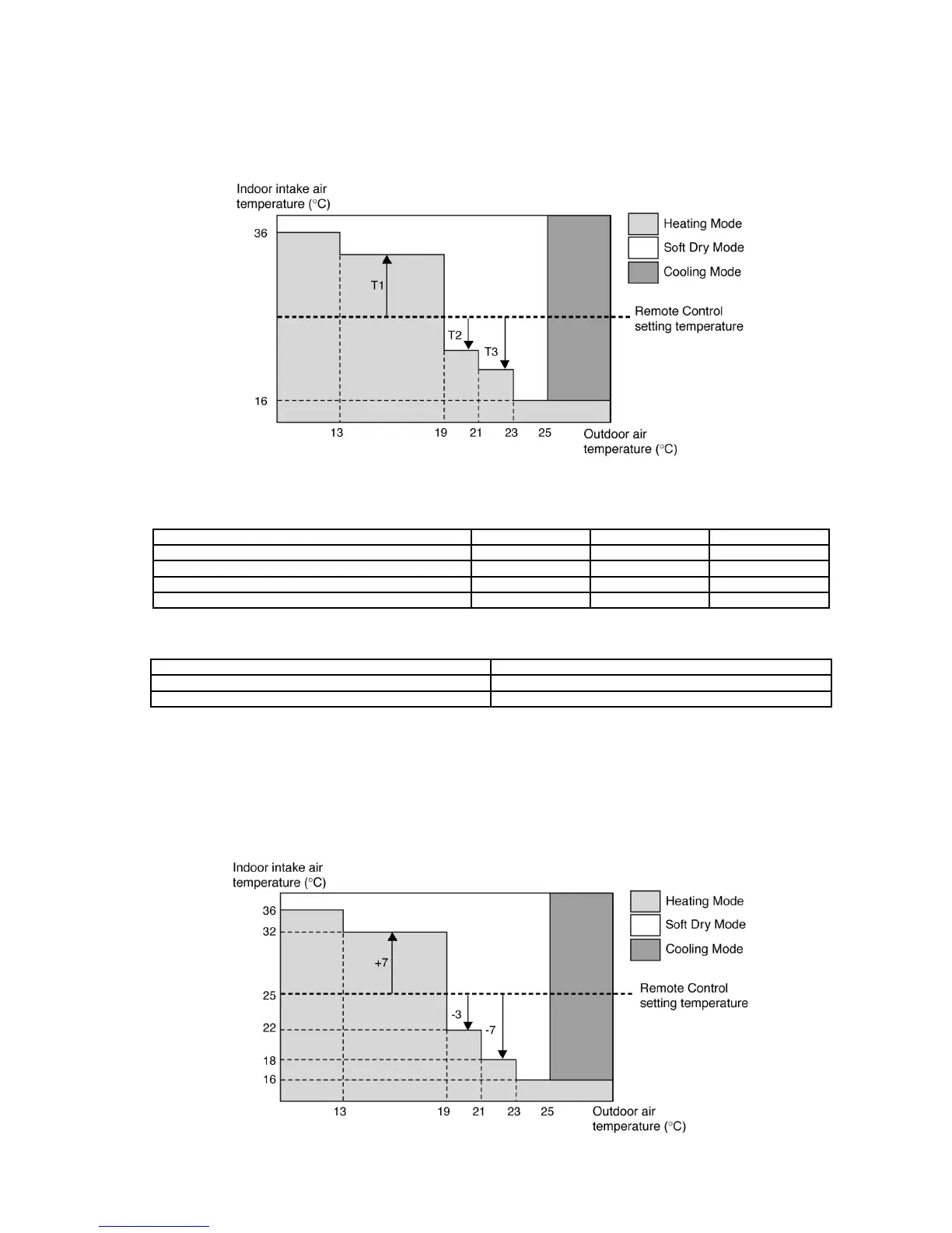 There is a temperature shifting on T1, T2, and T3 if the operation mode judged is changed from Cooling/Soft Dry to Heating or vice