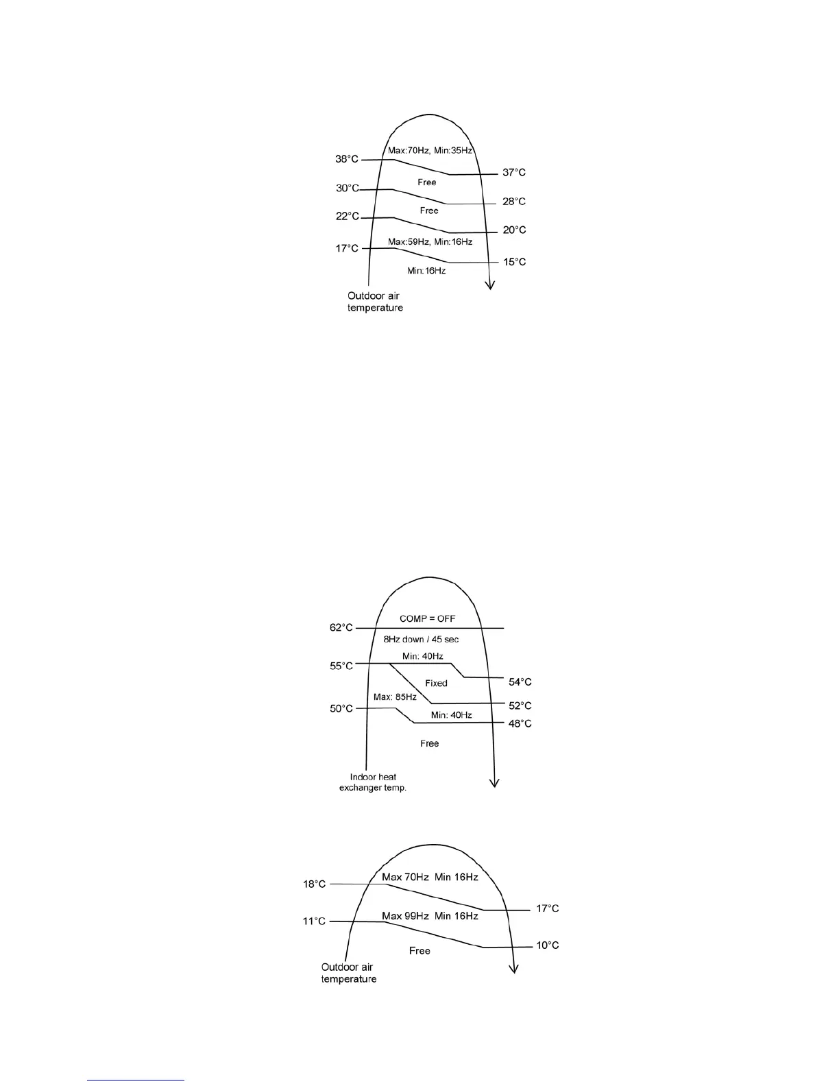 • The compressor operating frequency is regulated in accordance to the outdoor air temperature as shown in the diagram below.