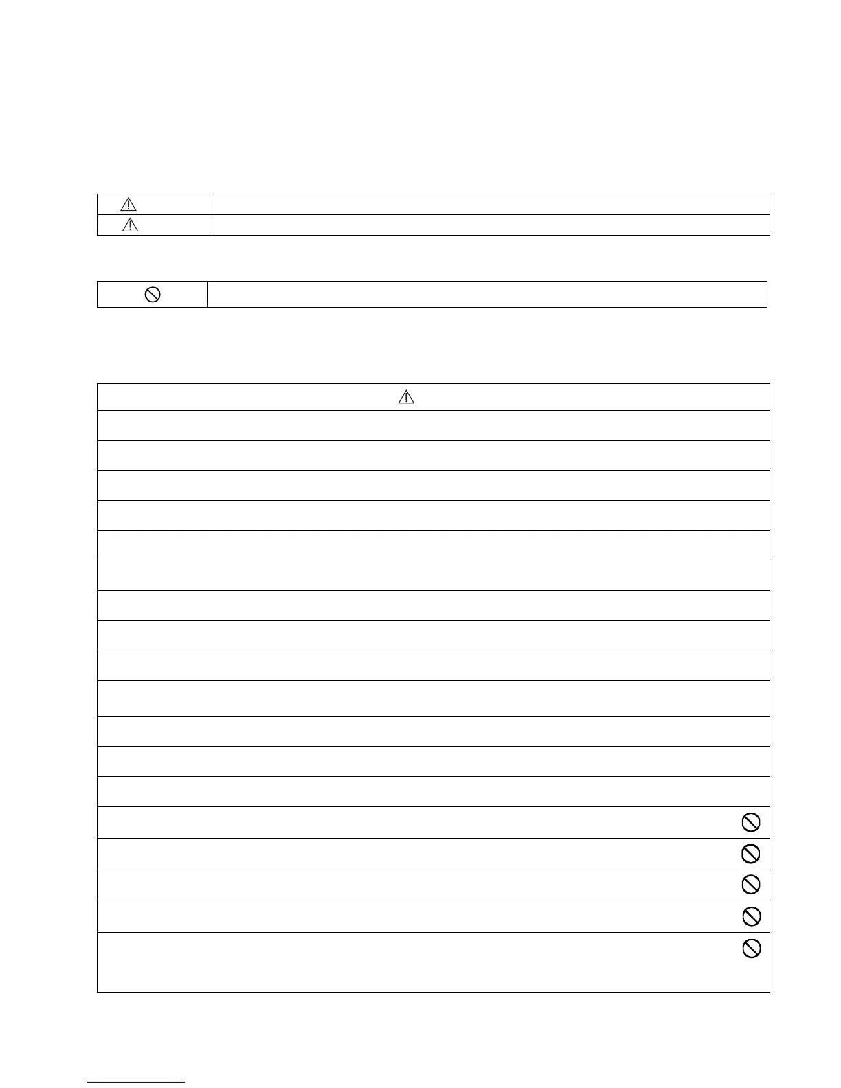 The caution items stated here must be followed because these important contents are related to safety. The