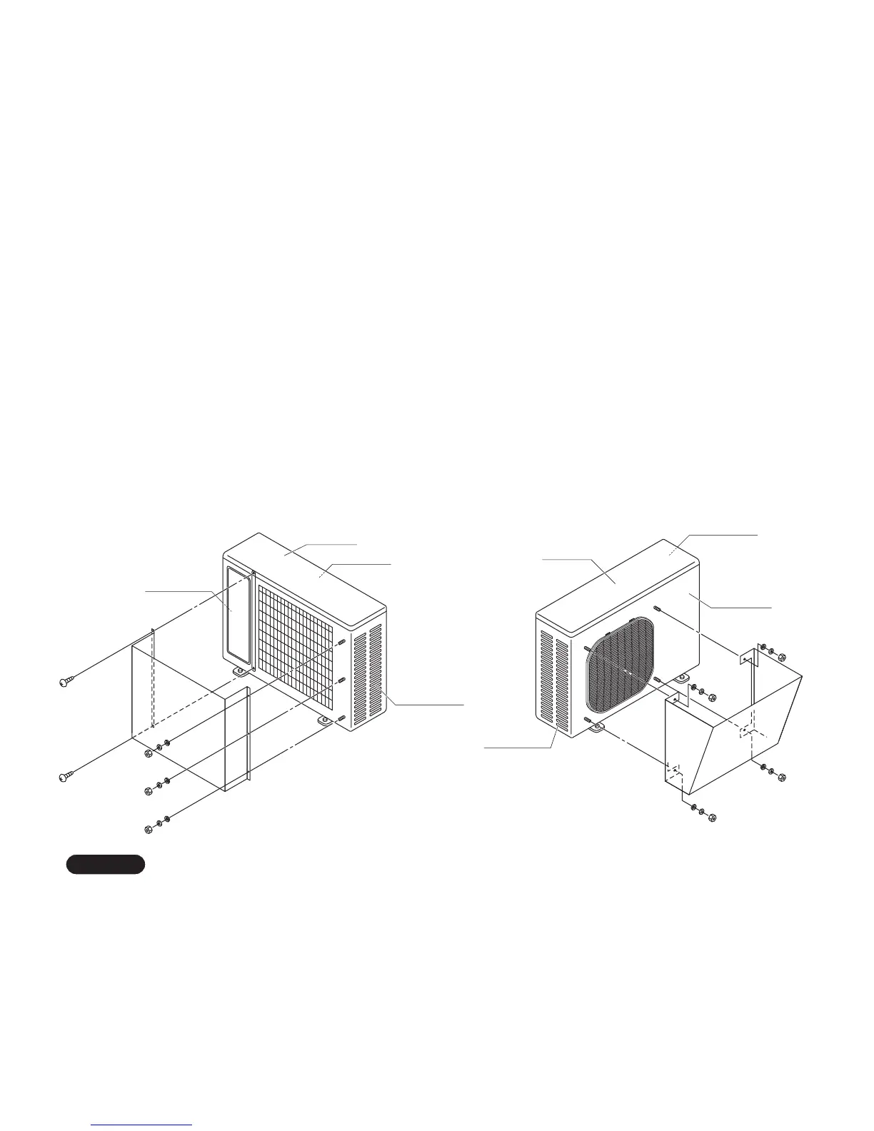 In order to prevent contact of the bolts and heat exchanger and other parts inside the unit, install the windbaffle using