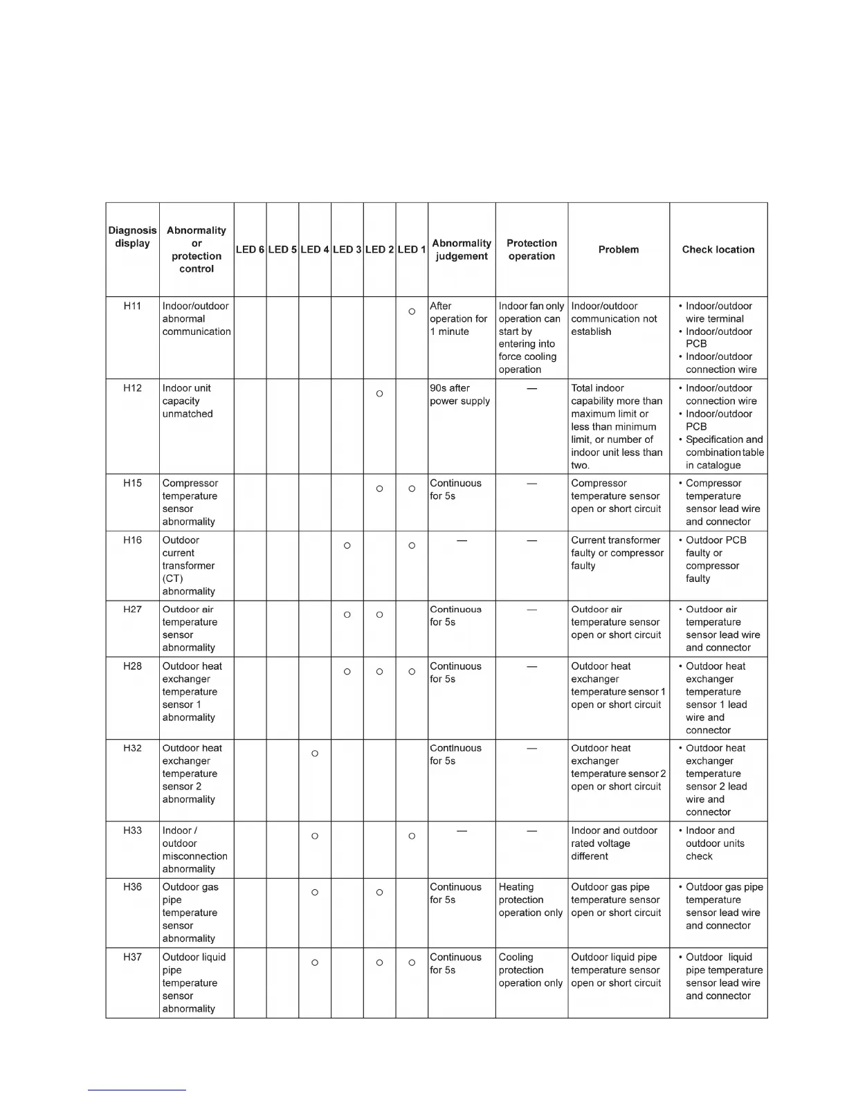 circuit board in the outdoor unit can be used to identify the location of the problem.