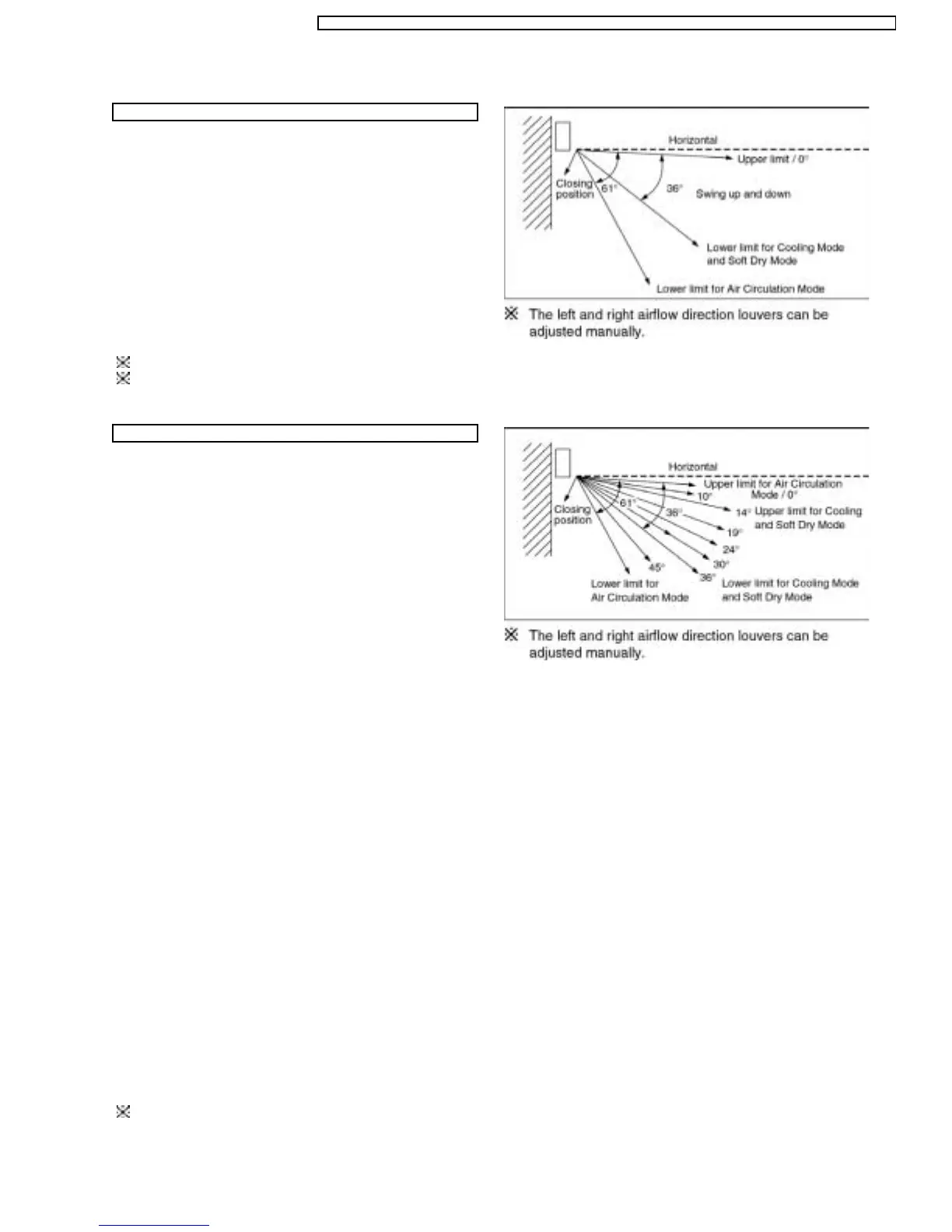 1. There is no swinging while indoor fan motor is stopped during Cooling and Soft Dry operation.
