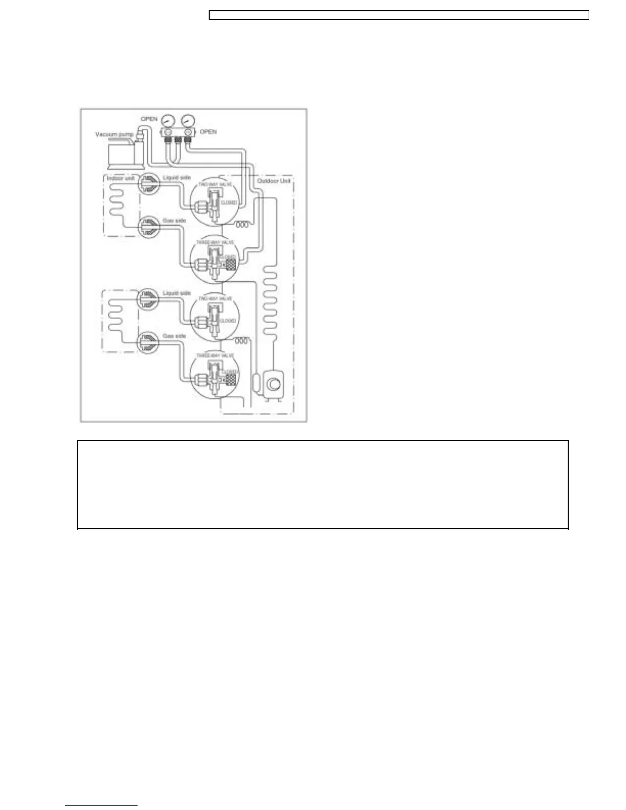 WHEN INSTALLING AN AIR CONDITIONER, BE SURE TO EVACUATE THE AIR INSIDE THE INDOOR UNIT AND PIPES