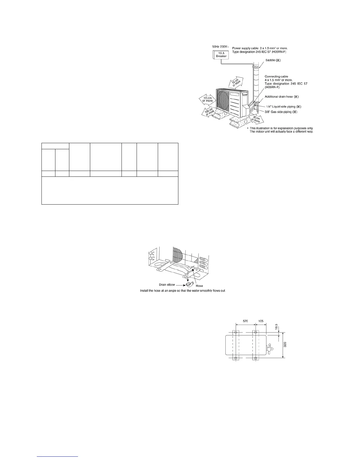 • If a drain elbow is used, the unit should be placed on a stand which is taller than 3 cm.