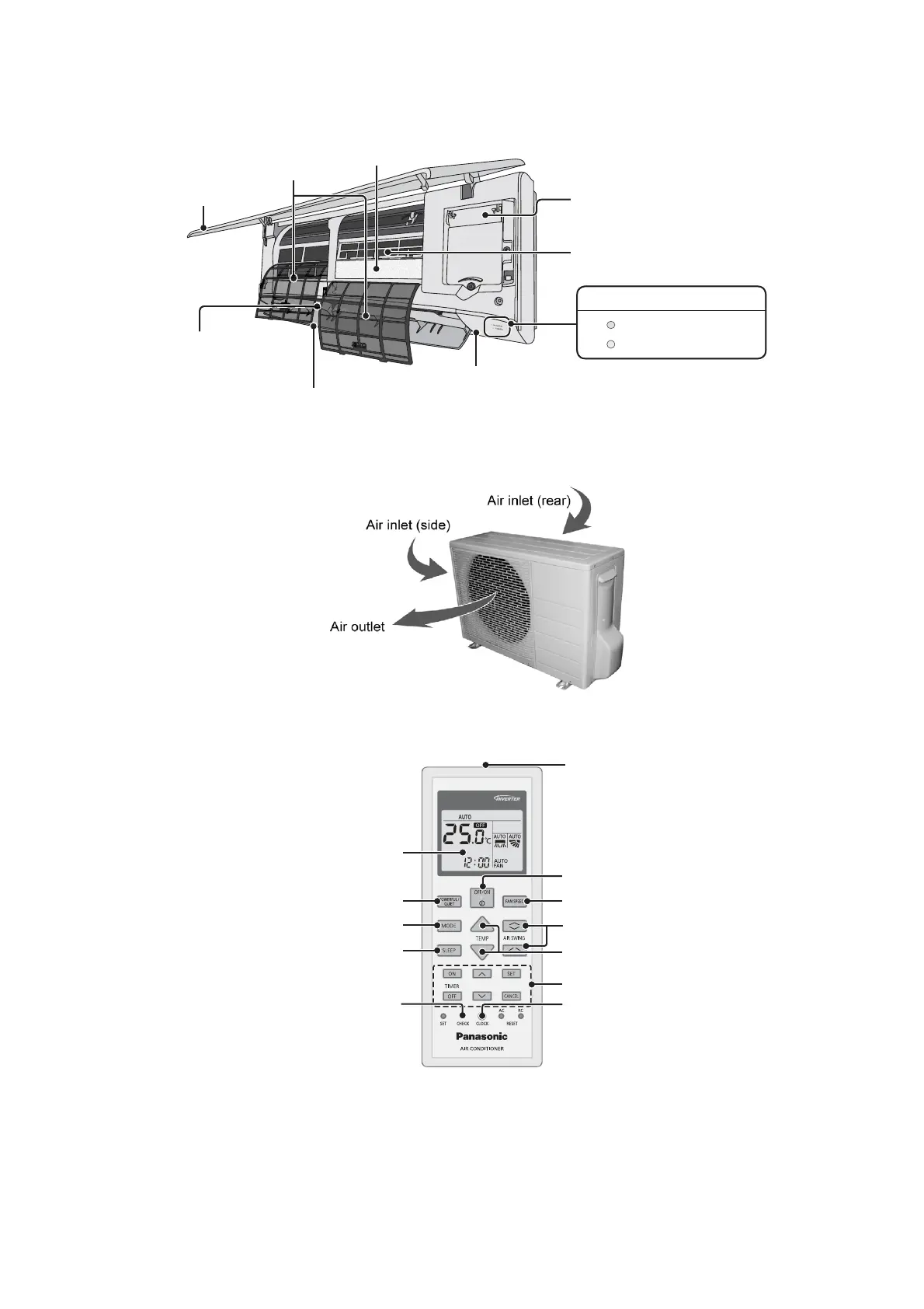 Panasonic CU-4E23PBE - Location of Controls and Components; Indoor Unit; Outdoor Unit; Remote Control