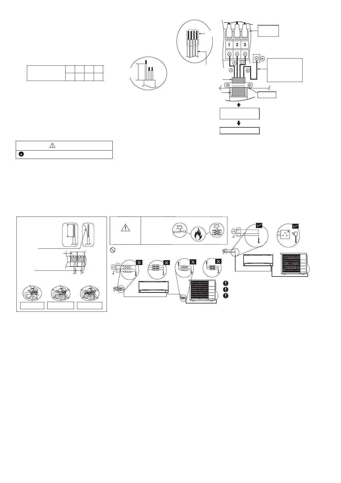Ensure the colour of wires of outdoor unit and the terminal Nos. are the same to the indoor’s respectively.