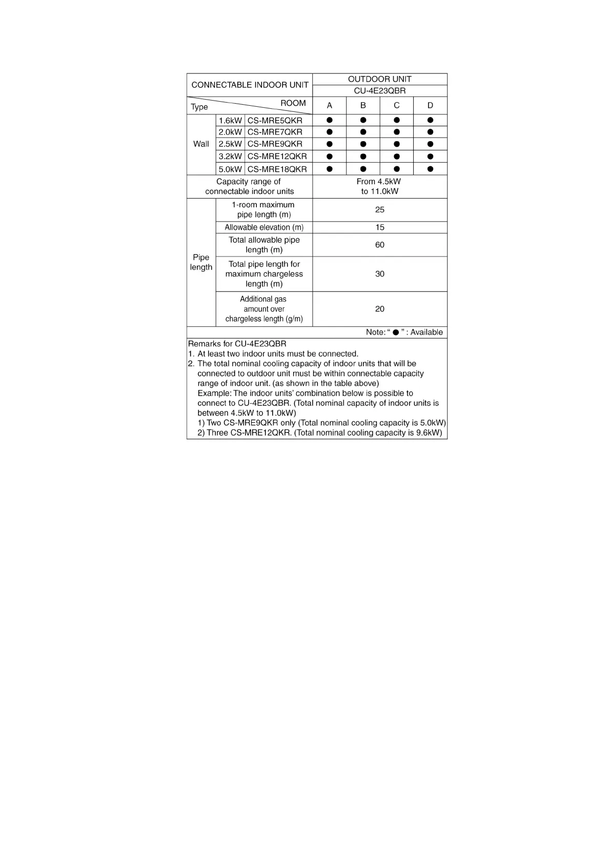 o A single outdoor unit enables air conditioning of up to four separate rooms for CU-4E23QBR.