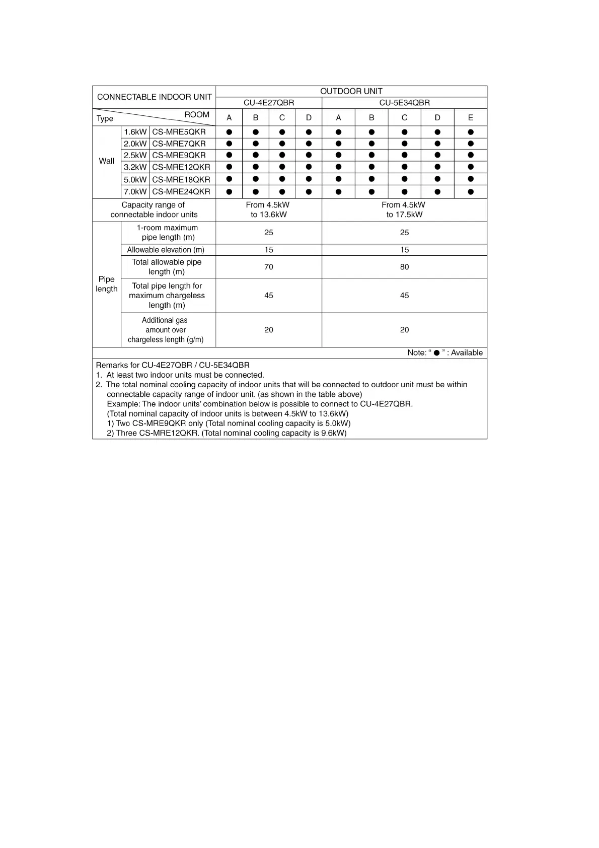 A single outdoor unit enables air conditioning of up to five separate rooms for CU-5E34QBR.