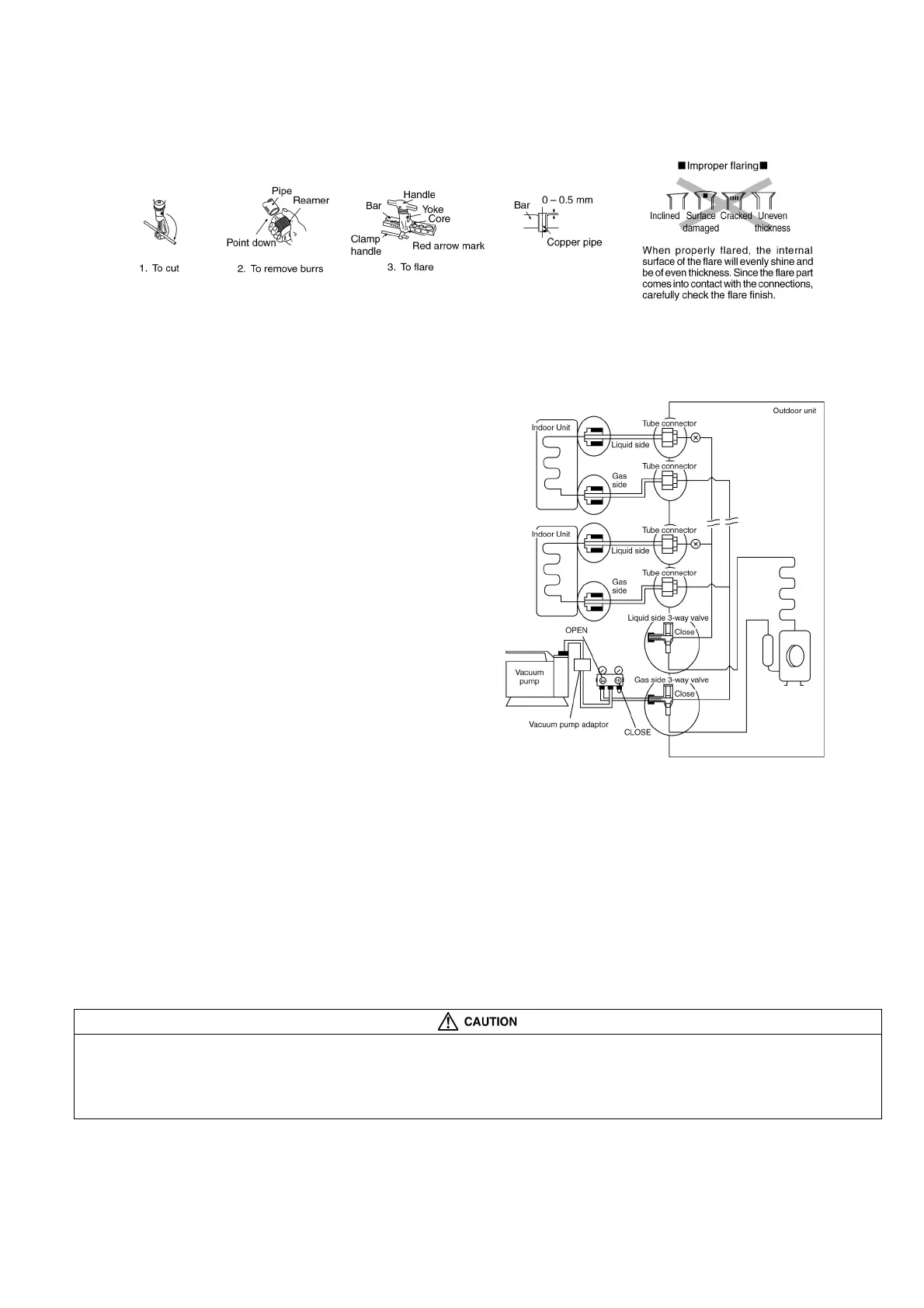3. Please make flare after inserting the flare nut onto the copper pipes.