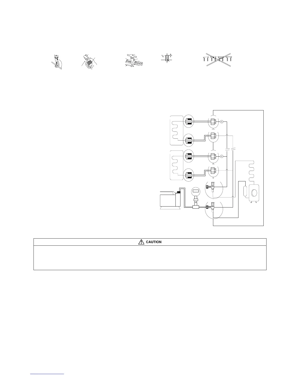 - Take care when handling the liquid refrigerant, it may cause frostbite.
