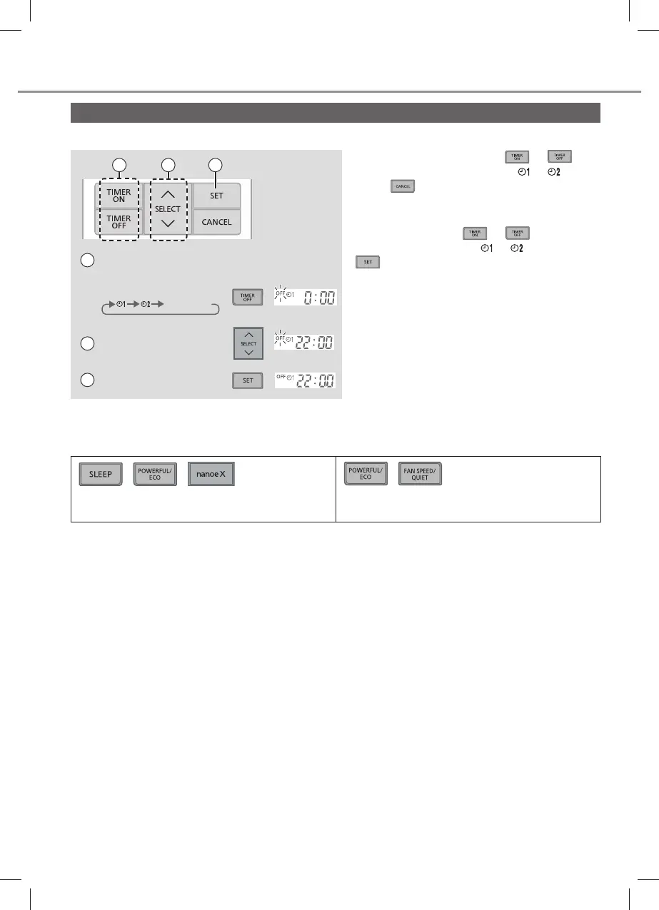 • Can be selected at the same time. • POWERFUL, QUIET and FAN SPEED